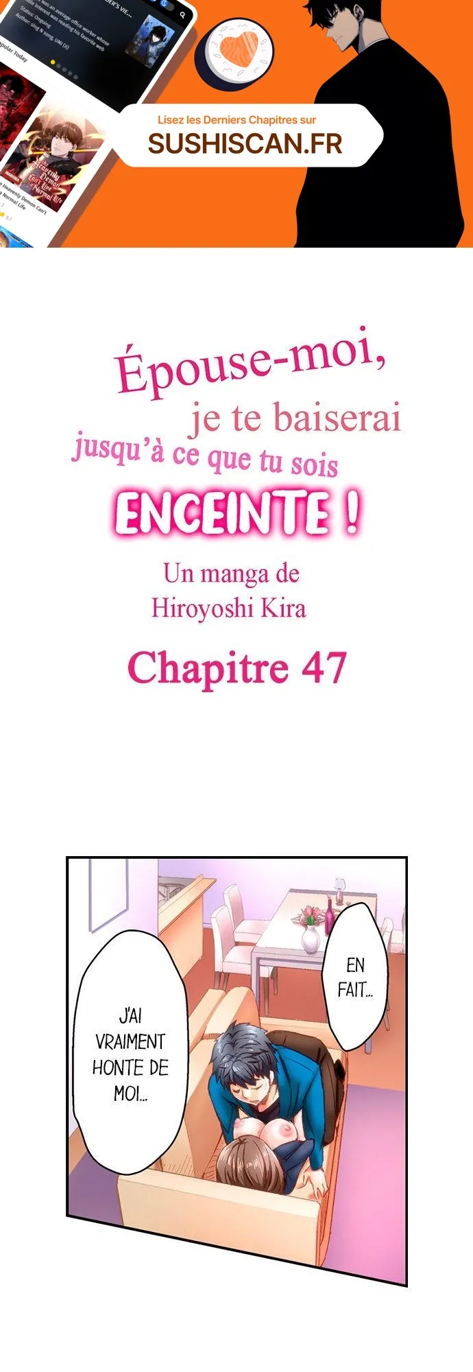 Lisez le dernier manga Épouse-moi, je te baiserai jusqu’à ce que tu tombes enceinte ! Chapitre 47 sur SushiScan. Le manga Épouse-moi, je te baiserai jusqu’à ce que tu tombes enceinte ! est toujours mis à jour sur SushiScan. N'oubliez pas de lire les autres mises à jour de manga. Une liste de collections de manga SushiScan se trouve dans le menu Liste de manga.