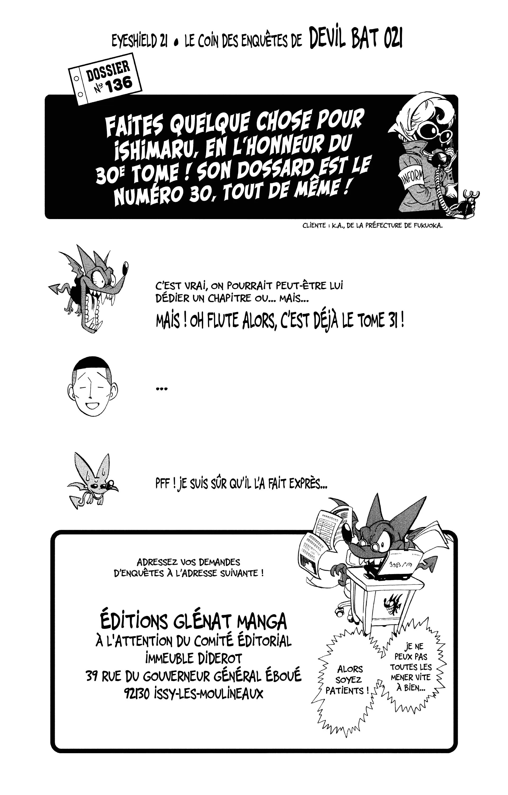 Lisez le dernier manga Eyeshield 21 Tome 31 sur SushiScan. Le manga Eyeshield 21 est toujours mis à jour sur SushiScan. N'oubliez pas de lire les autres mises à jour de manga. Une liste de collections de manga SushiScan se trouve dans le menu Liste de manga.