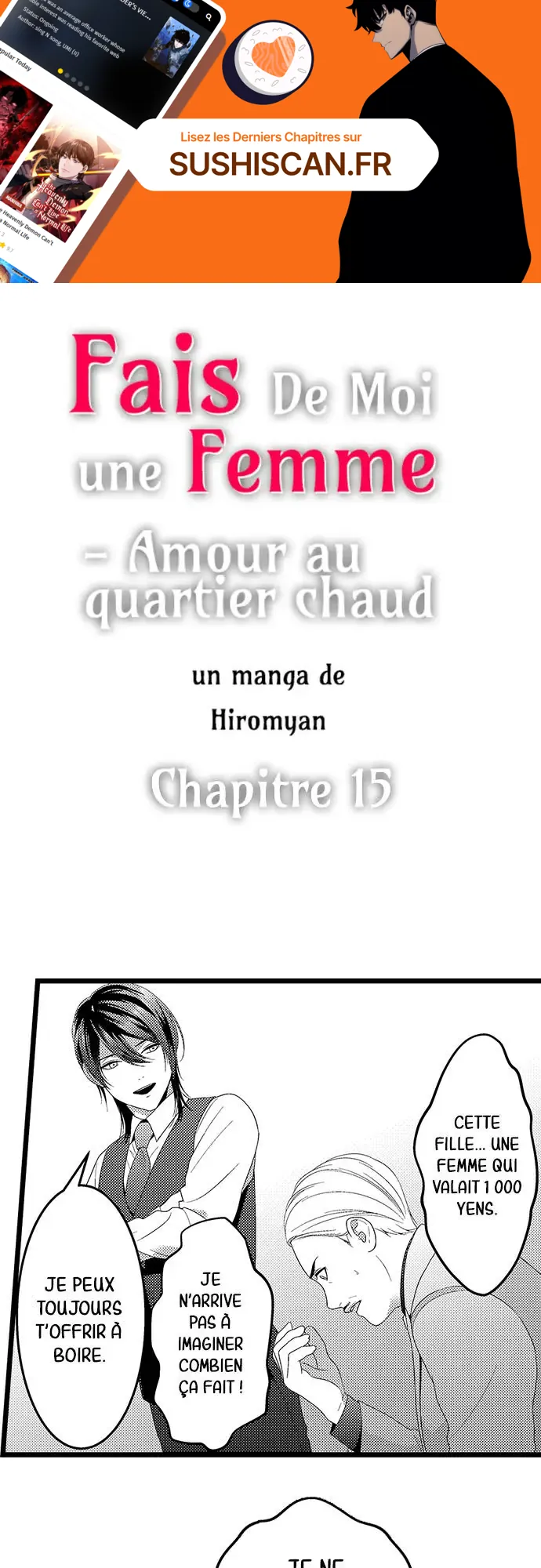 Lisez le dernier manga Fais de moi une femme – Amour au quartier chaud Chapitre 15 sur SushiScan. Le manga Fais de moi une femme – Amour au quartier chaud est toujours mis à jour sur SushiScan. N'oubliez pas de lire les autres mises à jour de manga. Une liste de collections de manga SushiScan se trouve dans le menu Liste de manga.
