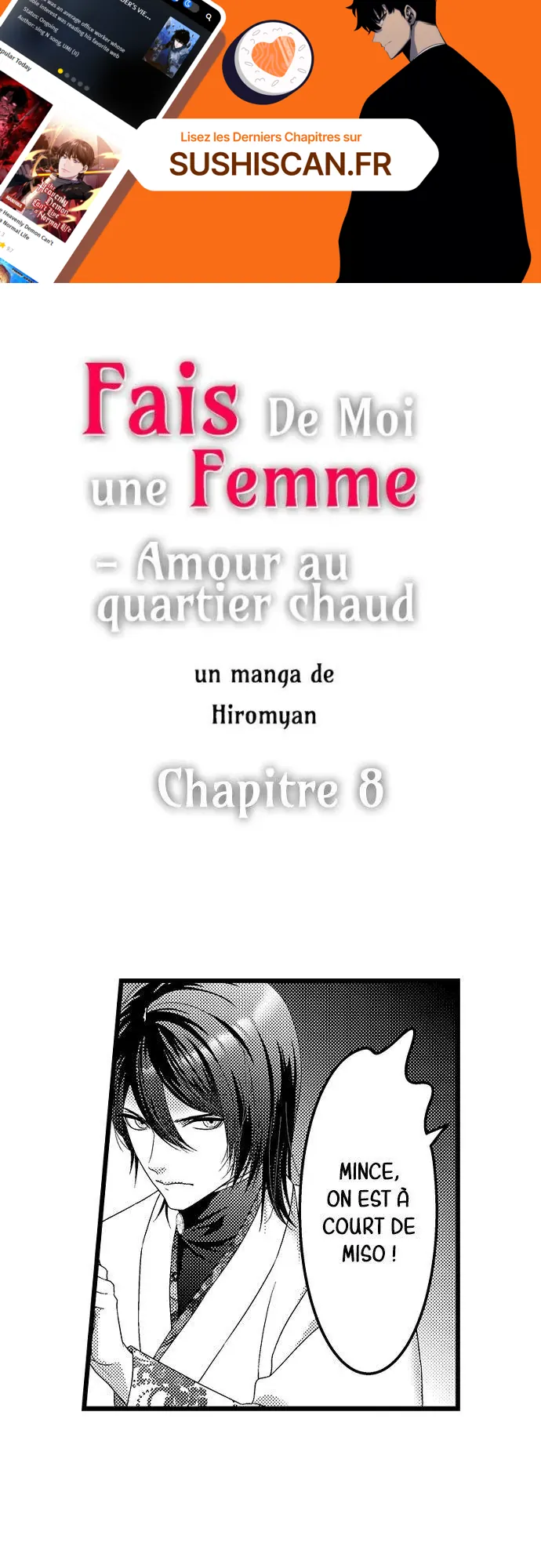 Lisez le dernier manga Fais de moi une femme – Amour au quartier chaud Chapitre 8 sur SushiScan. Le manga Fais de moi une femme – Amour au quartier chaud est toujours mis à jour sur SushiScan. N'oubliez pas de lire les autres mises à jour de manga. Une liste de collections de manga SushiScan se trouve dans le menu Liste de manga.