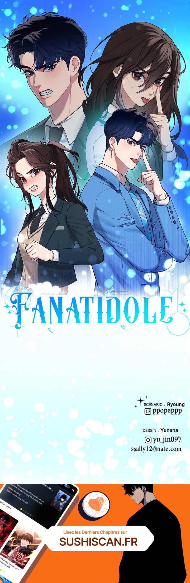 Lisez le dernier manga Fanatidole Chapitre 1 sur SushiScan. Le manga Fanatidole est toujours mis à jour sur SushiScan. N'oubliez pas de lire les autres mises à jour de manga. Une liste de collections de manga SushiScan se trouve dans le menu Liste de manga.