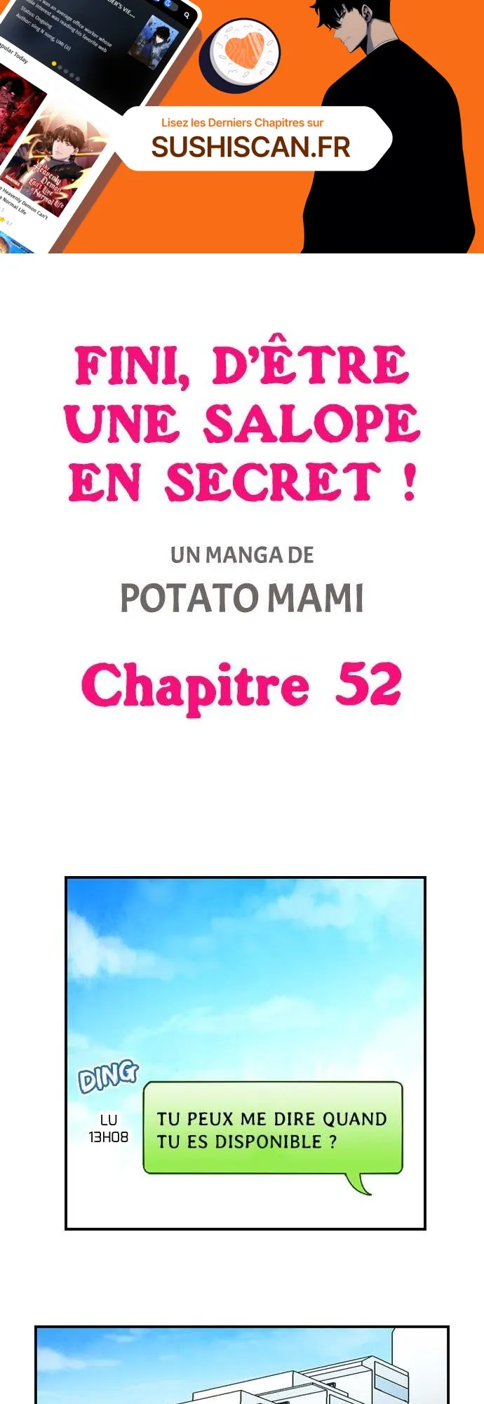 Lisez le dernier manga Fini, d’être une salope en secret ! Chapitre 52 sur SushiScan. Le manga Fini, d’être une salope en secret ! est toujours mis à jour sur SushiScan. N'oubliez pas de lire les autres mises à jour de manga. Une liste de collections de manga SushiScan se trouve dans le menu Liste de manga.