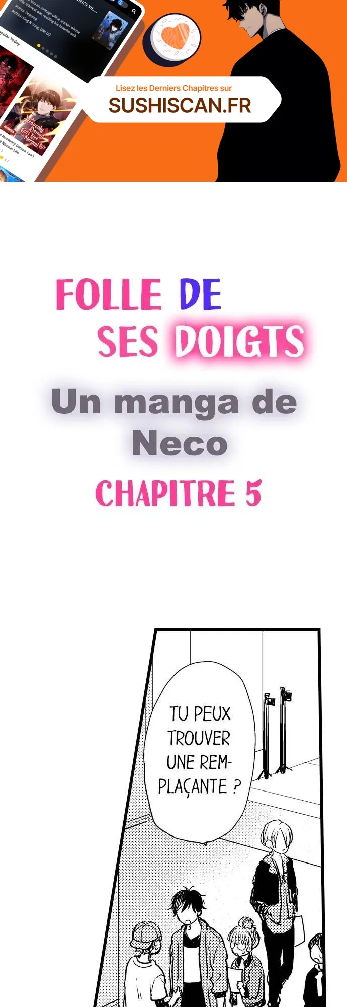 Lisez le dernier manga Folle de ses doigts Chapitre 5 sur SushiScan. Le manga Folle de ses doigts est toujours mis à jour sur SushiScan. N'oubliez pas de lire les autres mises à jour de manga. Une liste de collections de manga SushiScan se trouve dans le menu Liste de manga.
