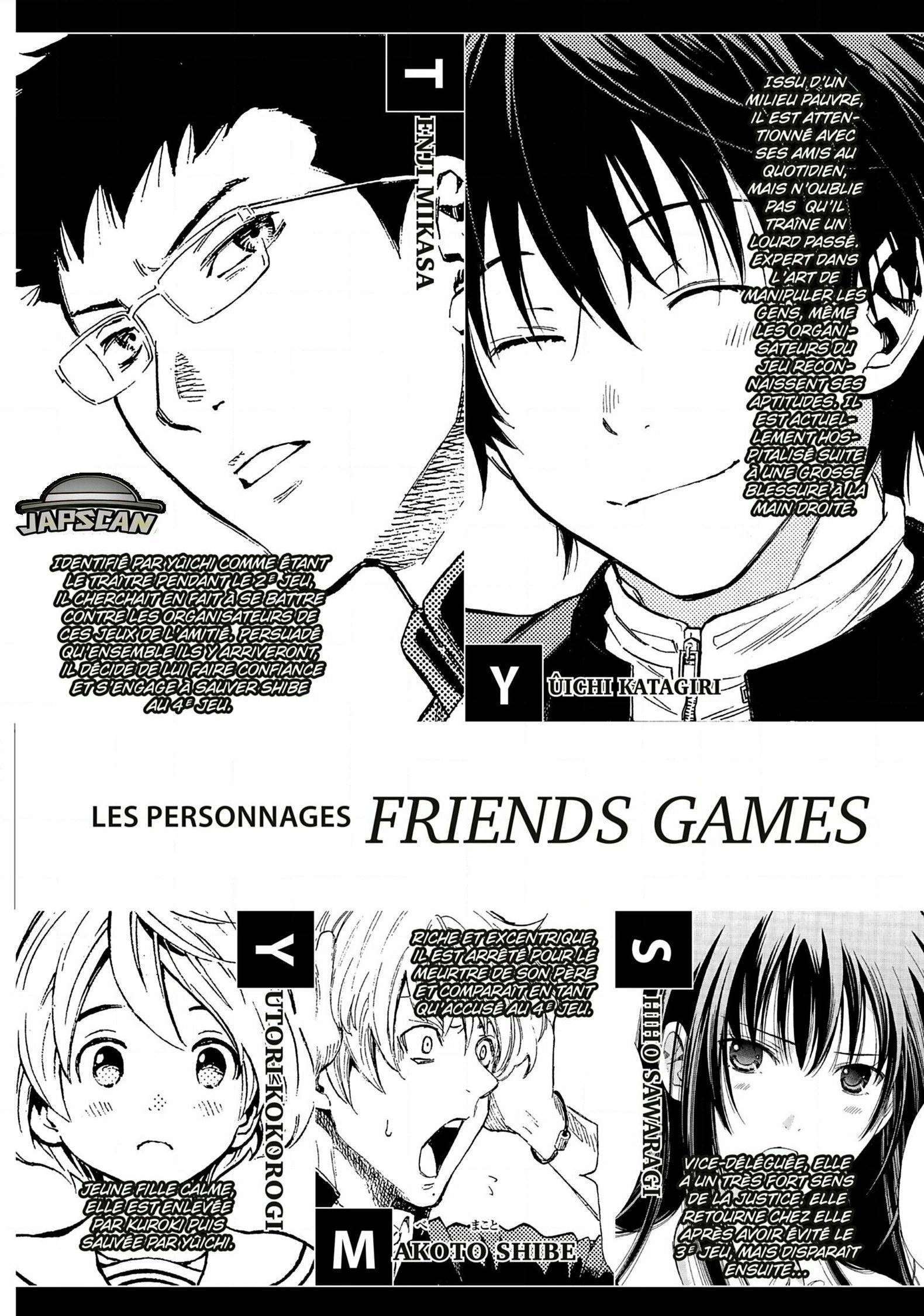 Lisez le dernier manga Friends Games Chapitre 28 sur SushiScan. Le manga Friends Games est toujours mis à jour sur SushiScan. N'oubliez pas de lire les autres mises à jour de manga. Une liste de collections de manga SushiScan se trouve dans le menu Liste de manga.