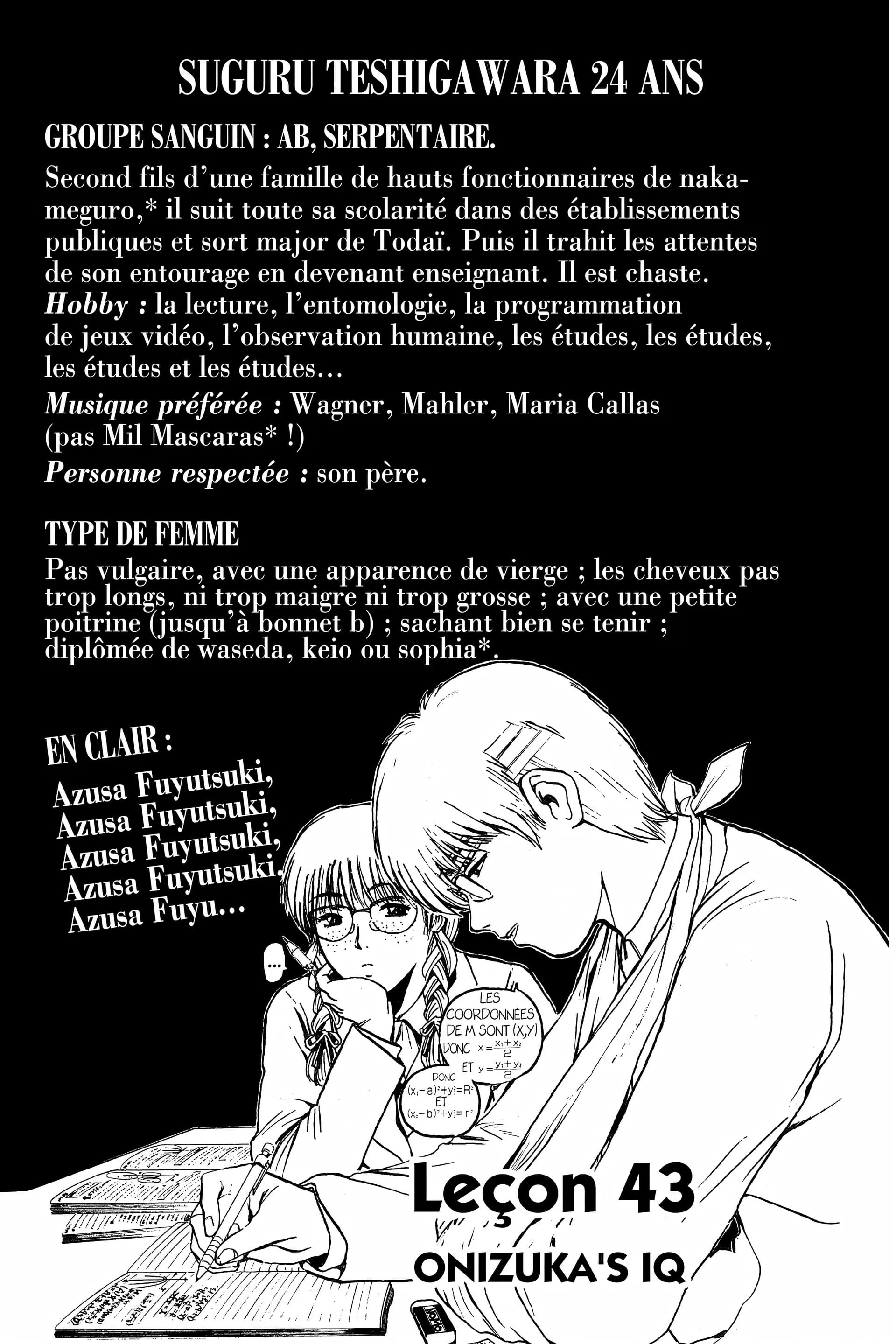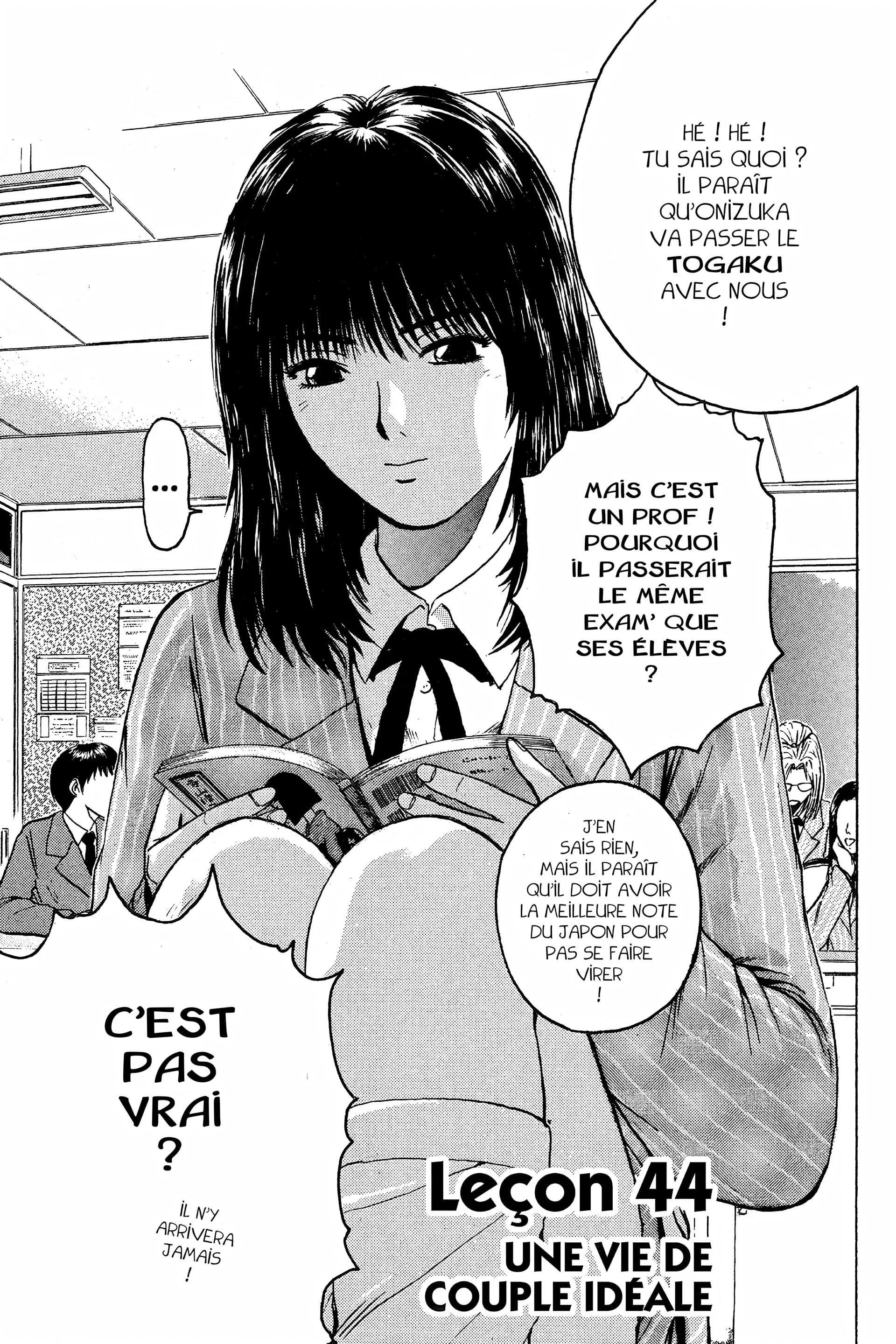 Lisez le dernier manga Great Teacher Onizuka Tome 6 sur SushiScan. Le manga Great Teacher Onizuka est toujours mis à jour sur SushiScan. N'oubliez pas de lire les autres mises à jour de manga. Une liste de collections de manga SushiScan se trouve dans le menu Liste de manga.