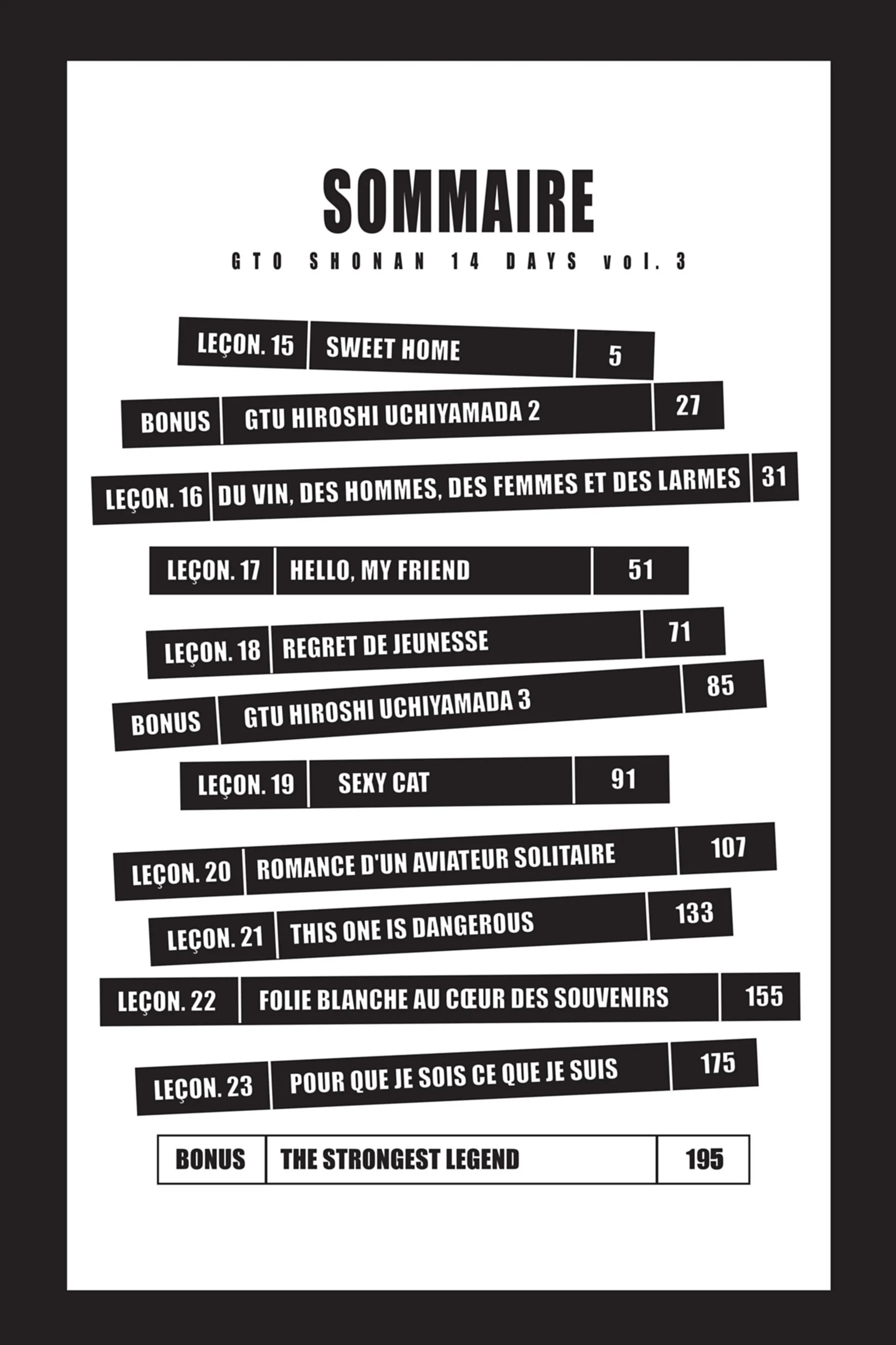 Lisez le dernier manga GTO – Shonan 14 Days Tome 3 sur SushiScan. Le manga GTO – Shonan 14 Days est toujours mis à jour sur SushiScan. N'oubliez pas de lire les autres mises à jour de manga. Une liste de collections de manga SushiScan se trouve dans le menu Liste de manga.