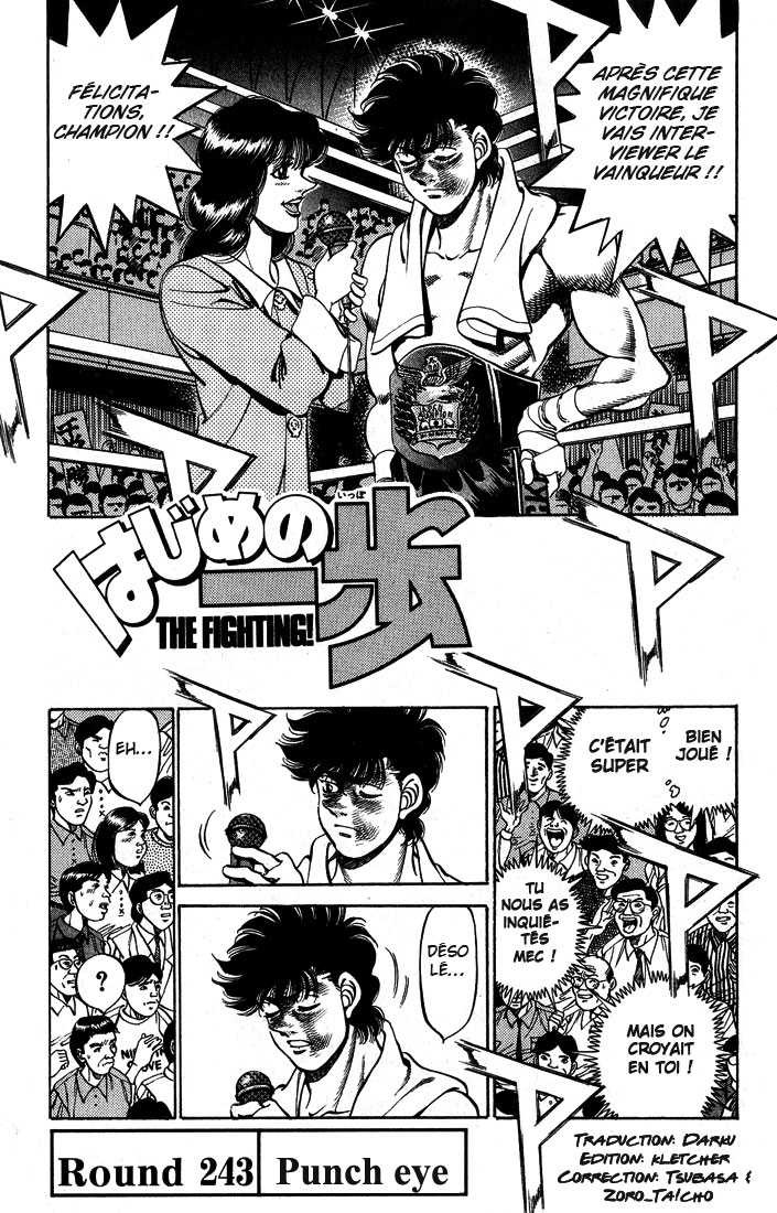 Lisez le dernier manga Hajime no Ippo Chapitre 243 sur SushiScan. Le manga Hajime no Ippo est toujours mis à jour sur SushiScan. N'oubliez pas de lire les autres mises à jour de manga. Une liste de collections de manga SushiScan se trouve dans le menu Liste de manga.