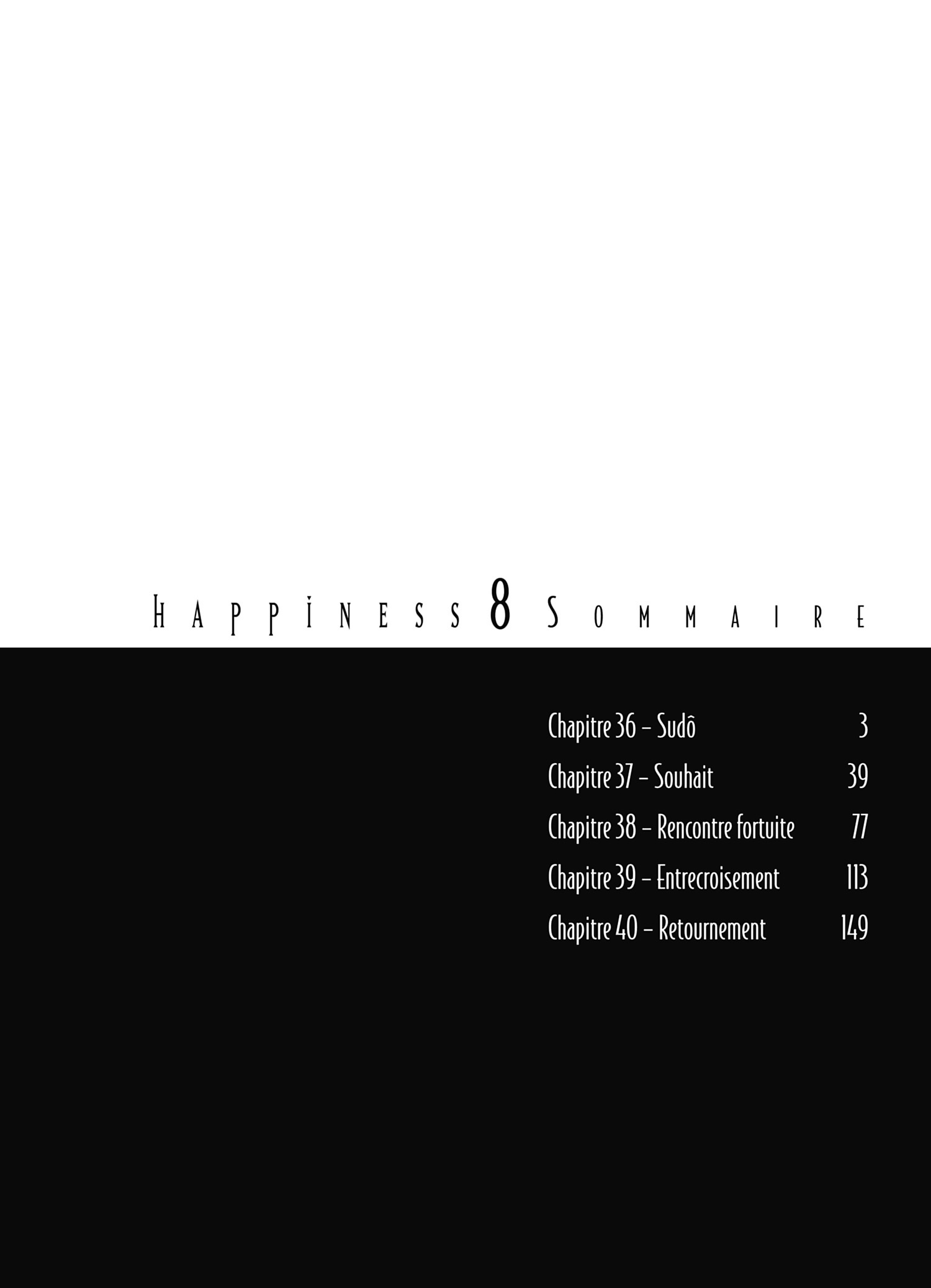 Lisez le dernier manga Happiness Volume 8 sur SushiScan. Le manga Happiness est toujours mis à jour sur SushiScan. N'oubliez pas de lire les autres mises à jour de manga. Une liste de collections de manga SushiScan se trouve dans le menu Liste de manga.