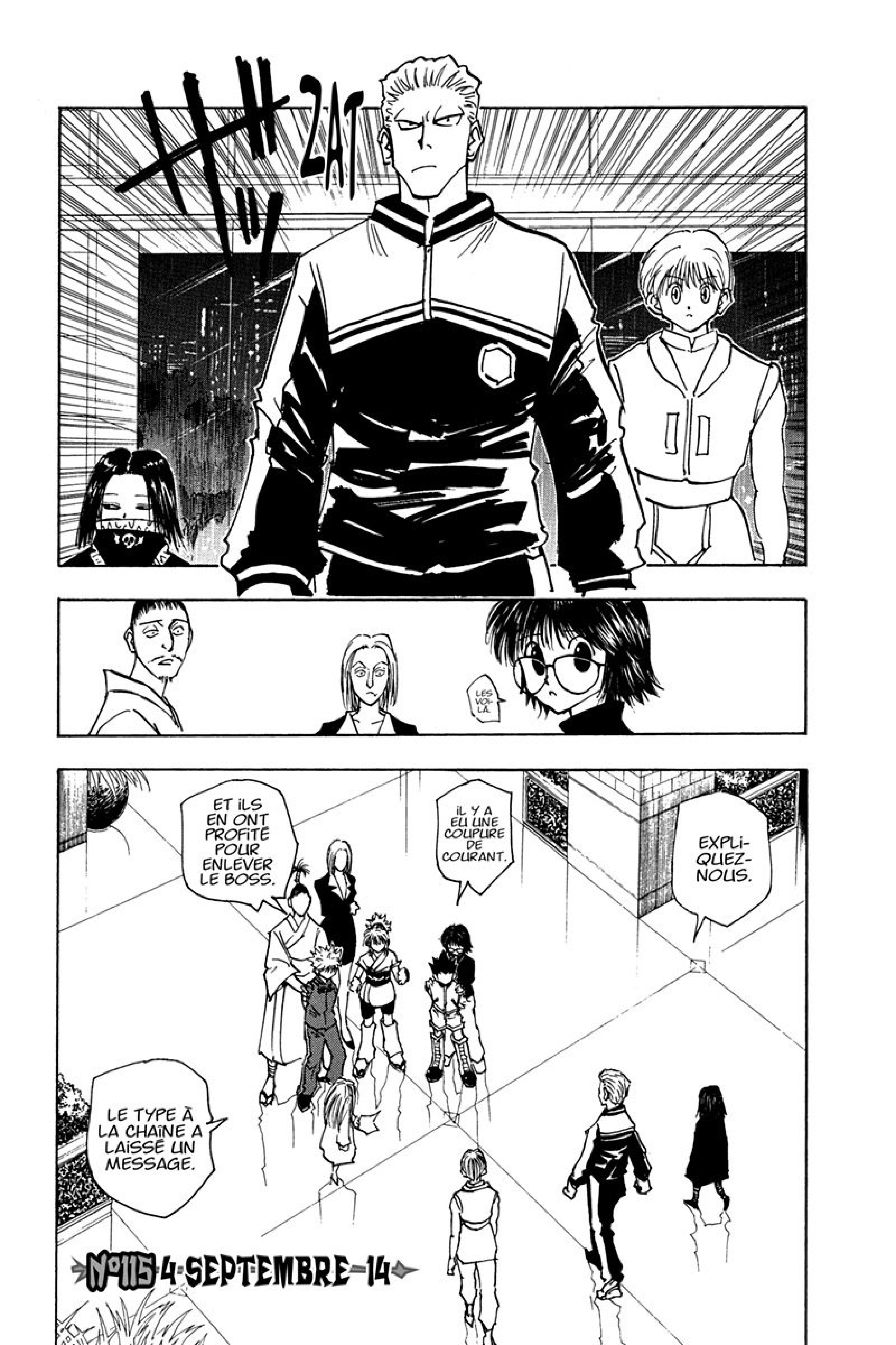 Lisez le dernier manga Hunter x Hunter Chapitre 115 sur SushiScan. Le manga Hunter x Hunter est toujours mis à jour sur SushiScan. N'oubliez pas de lire les autres mises à jour de manga. Une liste de collections de manga SushiScan se trouve dans le menu Liste de manga.
