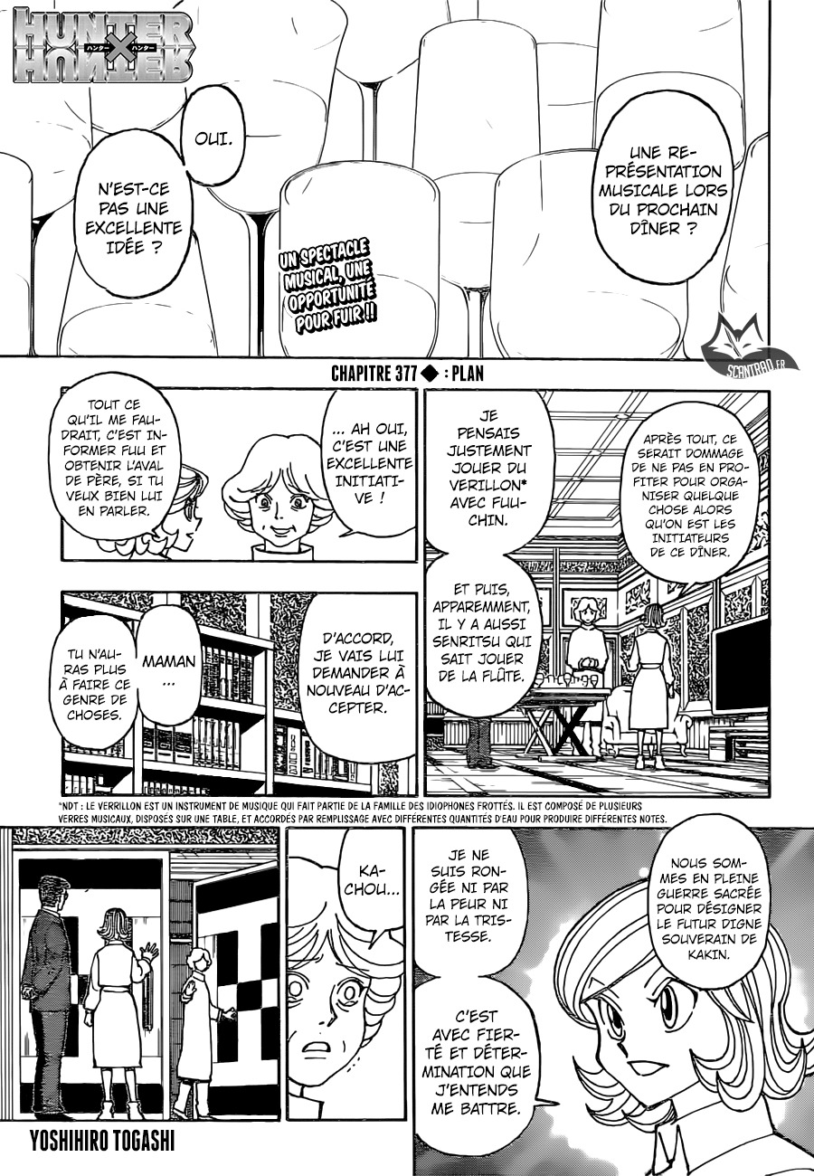 Lisez le dernier manga Hunter x Hunter Chapitre 377 sur SushiScan. Le manga Hunter x Hunter est toujours mis à jour sur SushiScan. N'oubliez pas de lire les autres mises à jour de manga. Une liste de collections de manga SushiScan se trouve dans le menu Liste de manga.