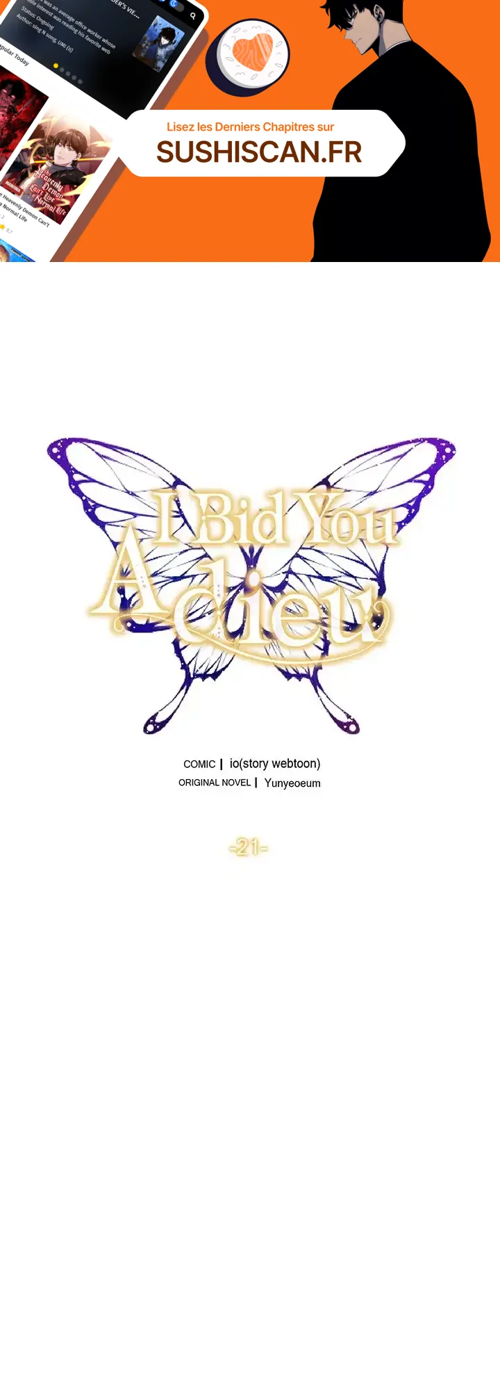 Lisez le dernier manga I Bid You Adieu Chapitre 21 sur SushiScan. Le manga I Bid You Adieu est toujours mis à jour sur SushiScan. N'oubliez pas de lire les autres mises à jour de manga. Une liste de collections de manga SushiScan se trouve dans le menu Liste de manga.