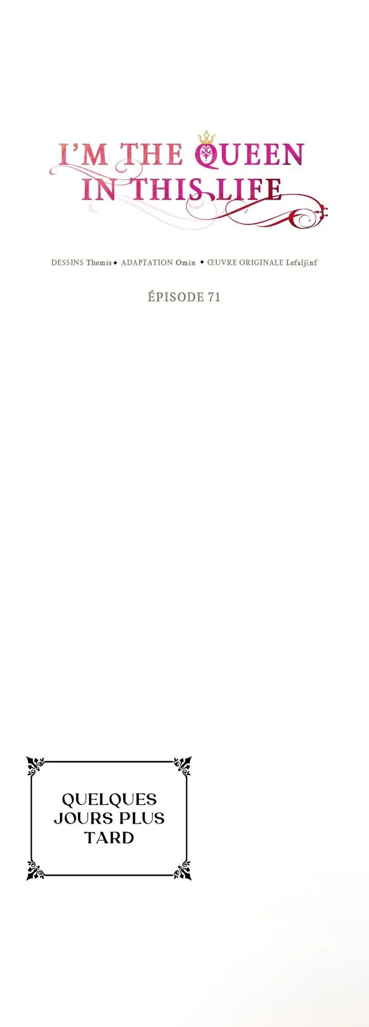 Lisez le dernier manga I’m the Queen in This Life Chapitre 71 sur SushiScan. Le manga I’m the Queen in This Life est toujours mis à jour sur SushiScan. N'oubliez pas de lire les autres mises à jour de manga. Une liste de collections de manga SushiScan se trouve dans le menu Liste de manga.