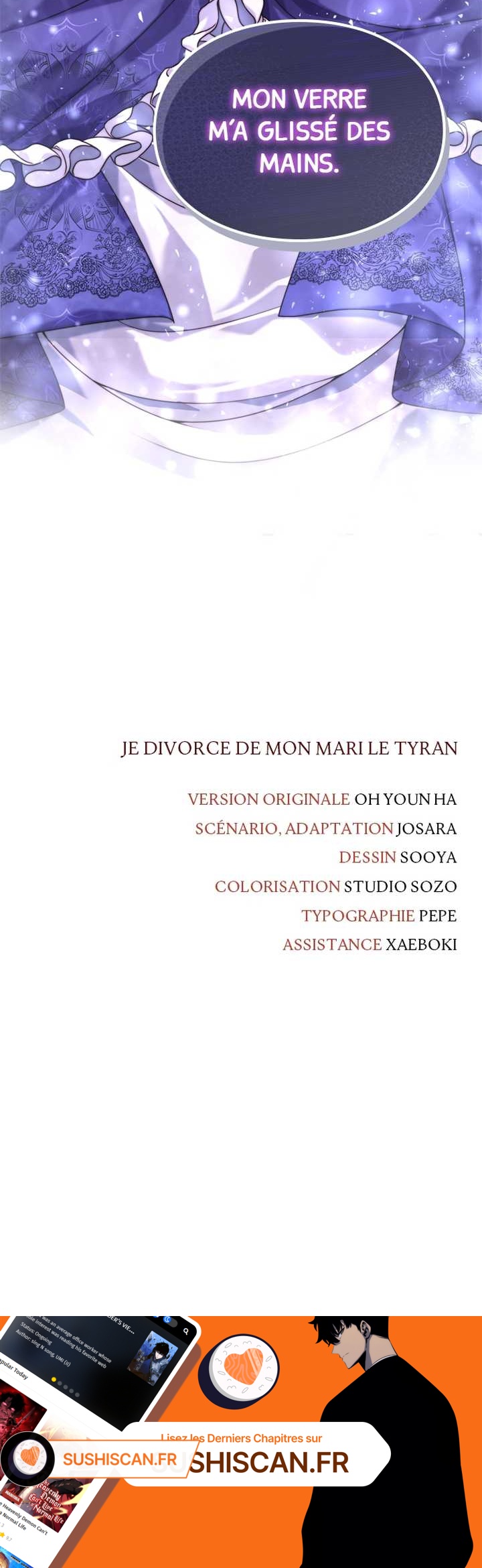 Lisez le dernier manga Je divorce de mon mari le tyran Chapitre 7 sur SushiScan. Le manga Je divorce de mon mari le tyran est toujours mis à jour sur SushiScan. N'oubliez pas de lire les autres mises à jour de manga. Une liste de collections de manga SushiScan se trouve dans le menu Liste de manga.