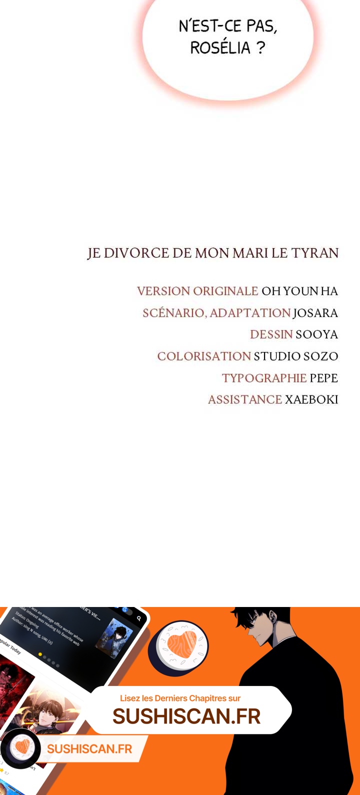 Lisez le dernier manga Je divorce de mon mari le tyran Chapter 40 sur SushiScan. Le manga Je divorce de mon mari le tyran est toujours mis à jour sur SushiScan. N'oubliez pas de lire les autres mises à jour de manga. Une liste de collections de manga SushiScan se trouve dans le menu Liste de manga.