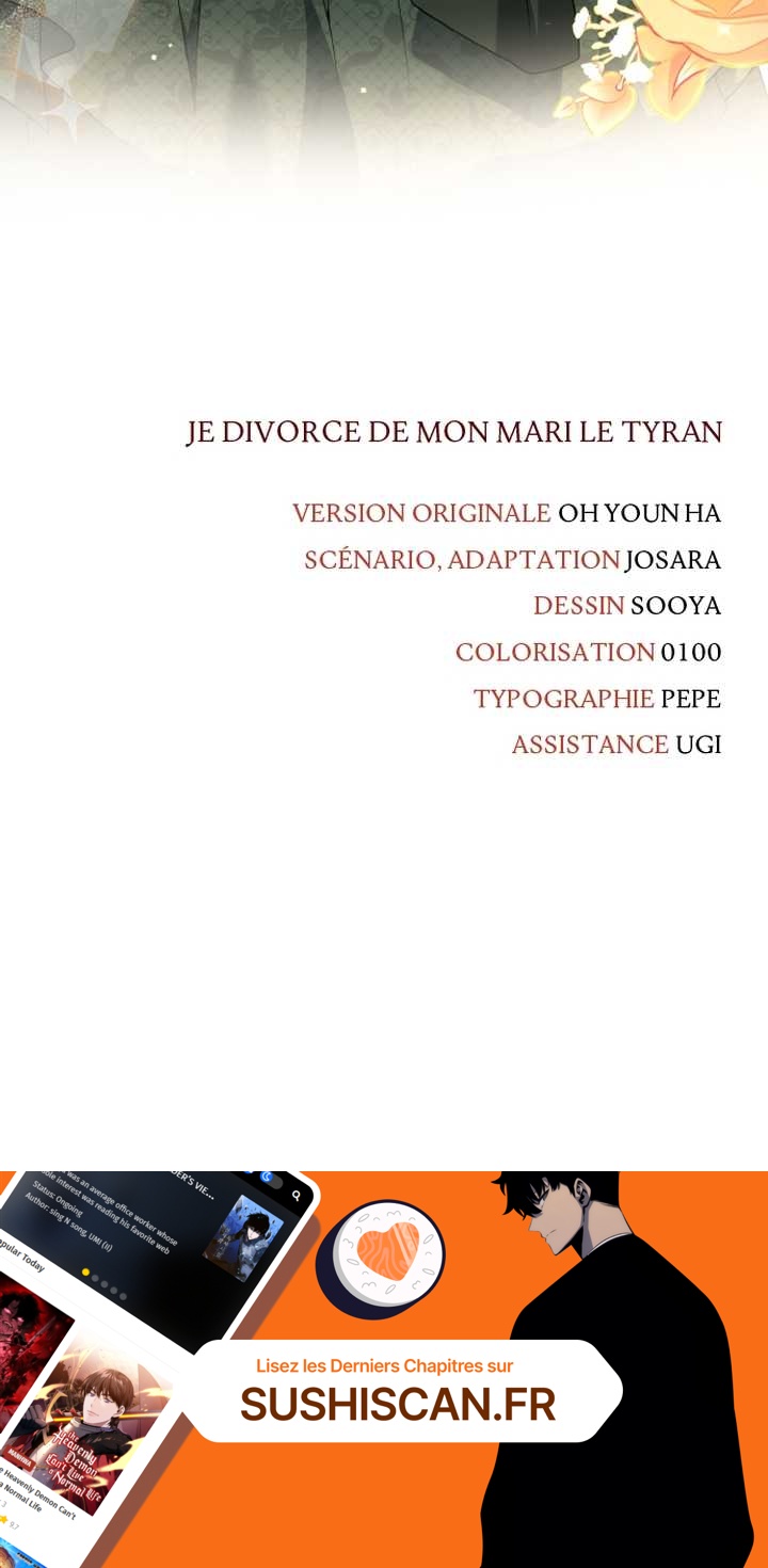 Lisez le dernier manga Je divorce de mon mari le tyran Chapter 89 sur SushiScan. Le manga Je divorce de mon mari le tyran est toujours mis à jour sur SushiScan. N'oubliez pas de lire les autres mises à jour de manga. Une liste de collections de manga SushiScan se trouve dans le menu Liste de manga.