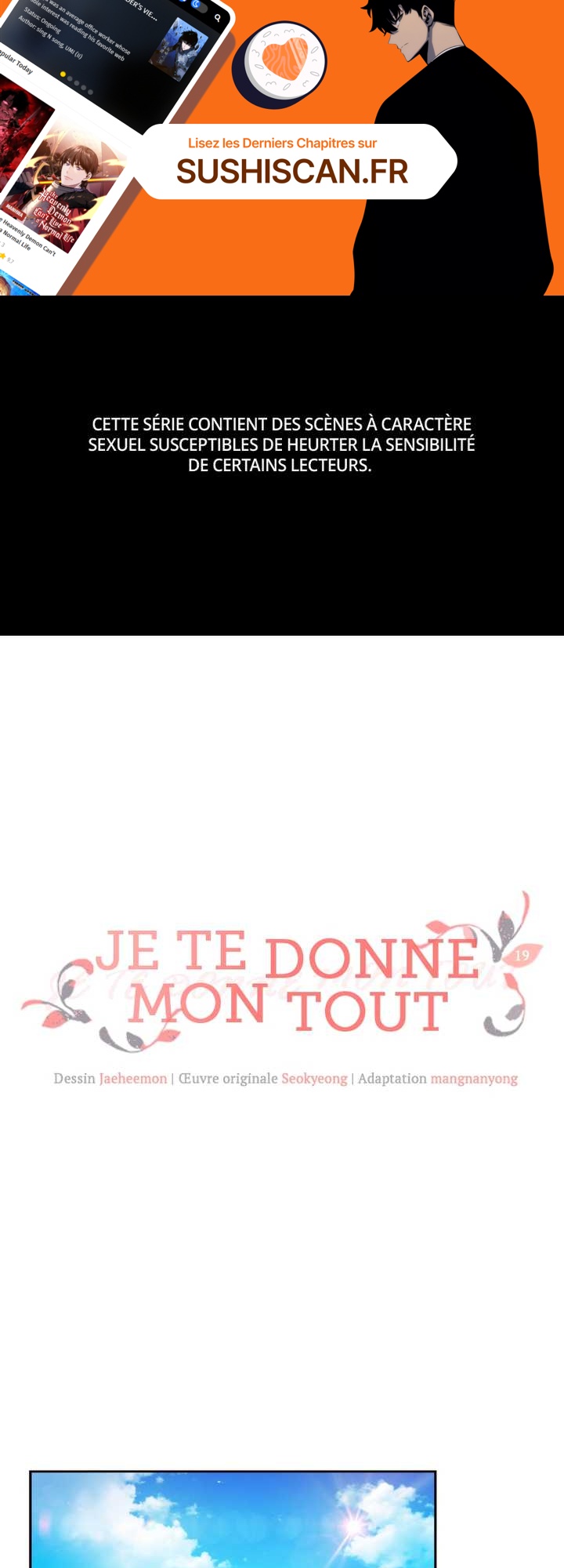 Lisez le dernier manga Je te donne mon tout Chapitre 19 sur SushiScan. Le manga Je te donne mon tout est toujours mis à jour sur SushiScan. N'oubliez pas de lire les autres mises à jour de manga. Une liste de collections de manga SushiScan se trouve dans le menu Liste de manga.