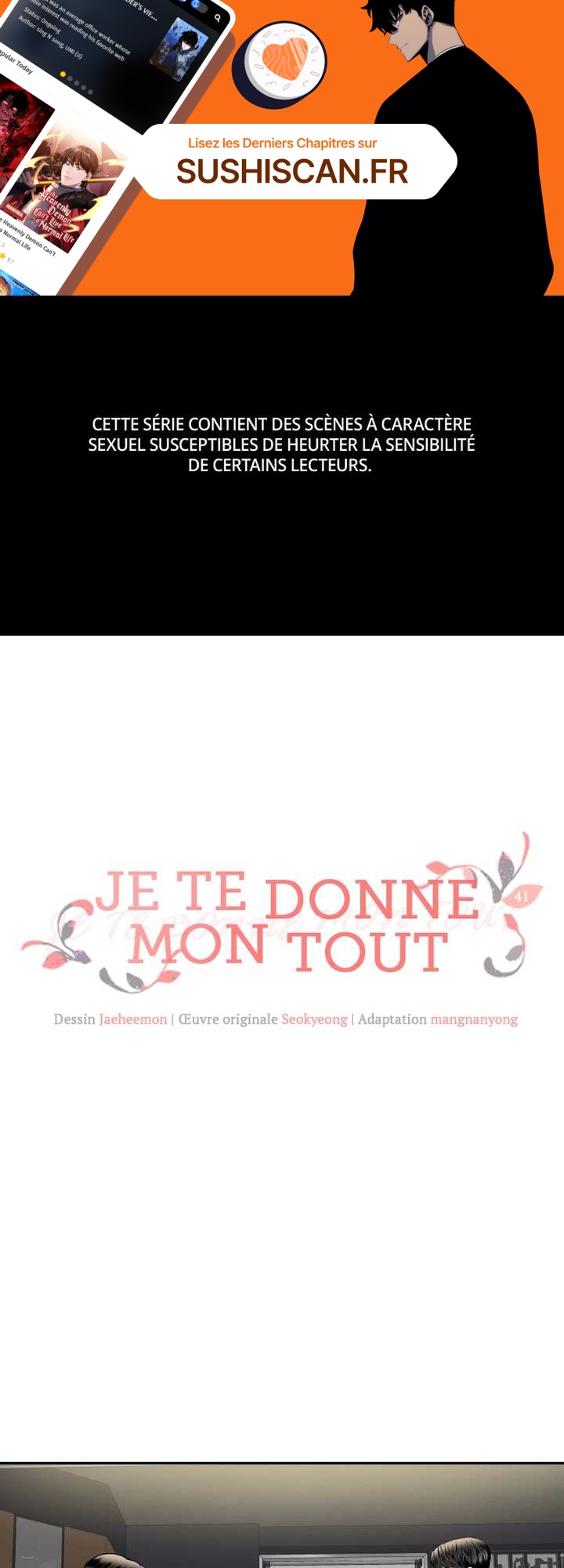 Lisez le dernier manga Je te donne mon tout Chapitre 41 sur SushiScan. Le manga Je te donne mon tout est toujours mis à jour sur SushiScan. N'oubliez pas de lire les autres mises à jour de manga. Une liste de collections de manga SushiScan se trouve dans le menu Liste de manga.