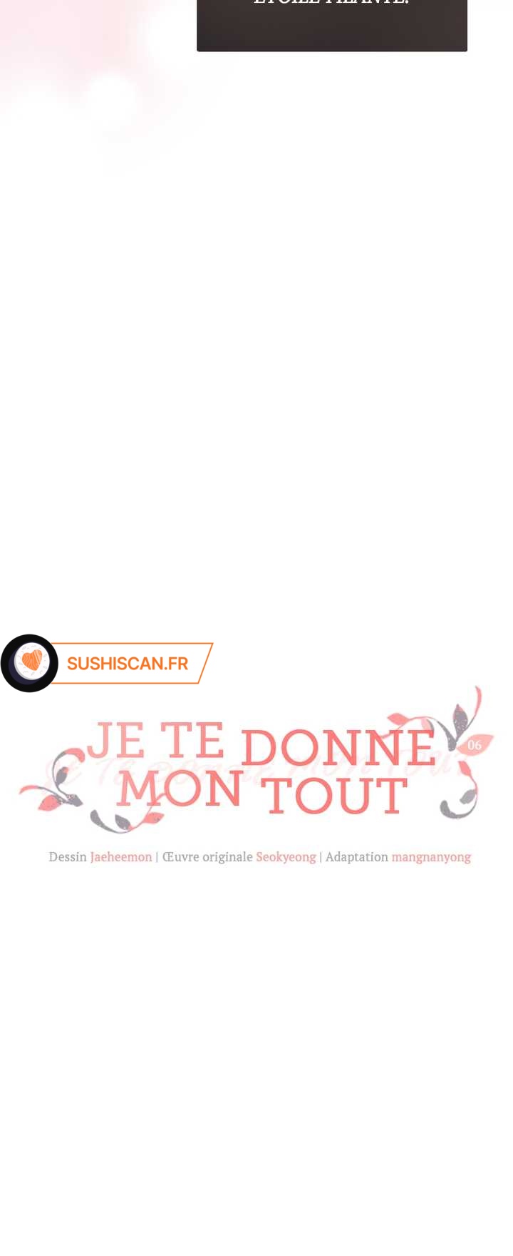 Lisez le dernier manga Je te donne mon tout Chapitre 6 sur SushiScan. Le manga Je te donne mon tout est toujours mis à jour sur SushiScan. N'oubliez pas de lire les autres mises à jour de manga. Une liste de collections de manga SushiScan se trouve dans le menu Liste de manga.