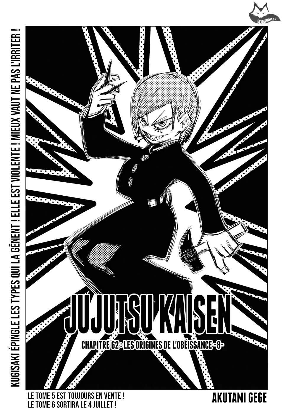 Lisez le dernier manga Jujutsu Kaisen Chapitre 62 sur SushiScan. Le manga Jujutsu Kaisen est toujours mis à jour sur SushiScan. N'oubliez pas de lire les autres mises à jour de manga. Une liste de collections de manga SushiScan se trouve dans le menu Liste de manga.