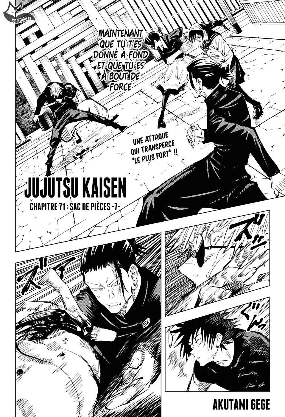 Lisez le dernier manga Jujutsu Kaisen Chapitre 71 sur SushiScan. Le manga Jujutsu Kaisen est toujours mis à jour sur SushiScan. N'oubliez pas de lire les autres mises à jour de manga. Une liste de collections de manga SushiScan se trouve dans le menu Liste de manga.