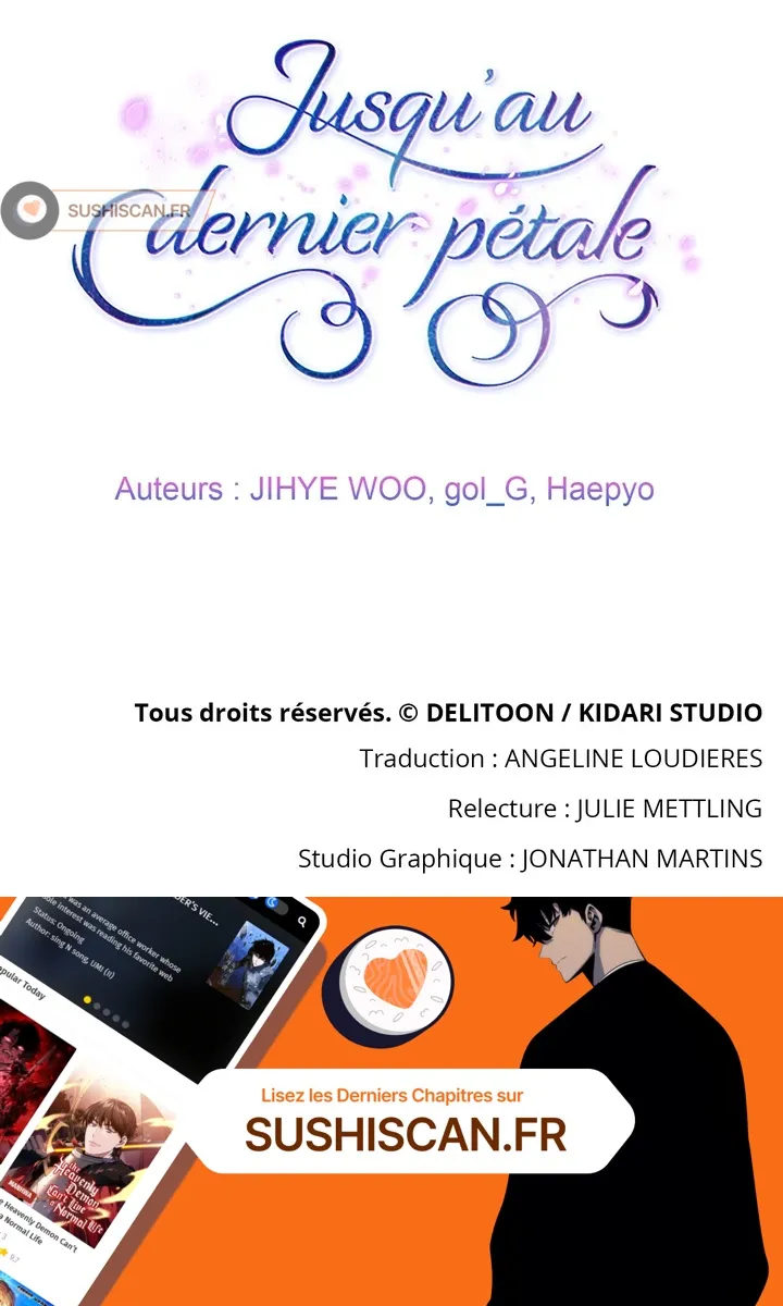 Lisez le dernier manga Jusqu’au dernier pétale Chapitre 59 sur SushiScan. Le manga Jusqu’au dernier pétale est toujours mis à jour sur SushiScan. N'oubliez pas de lire les autres mises à jour de manga. Une liste de collections de manga SushiScan se trouve dans le menu Liste de manga.