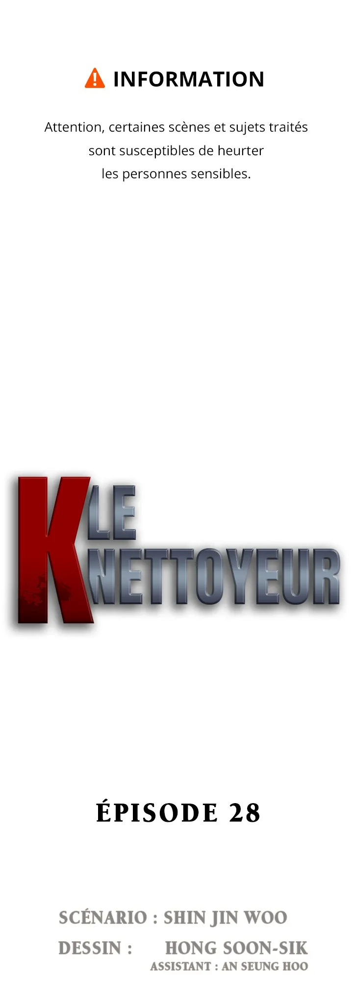 Lisez le dernier manga K, le Nettoyeur Chapitre 28 sur SushiScan. Le manga K, le Nettoyeur est toujours mis à jour sur SushiScan. N'oubliez pas de lire les autres mises à jour de manga. Une liste de collections de manga SushiScan se trouve dans le menu Liste de manga.