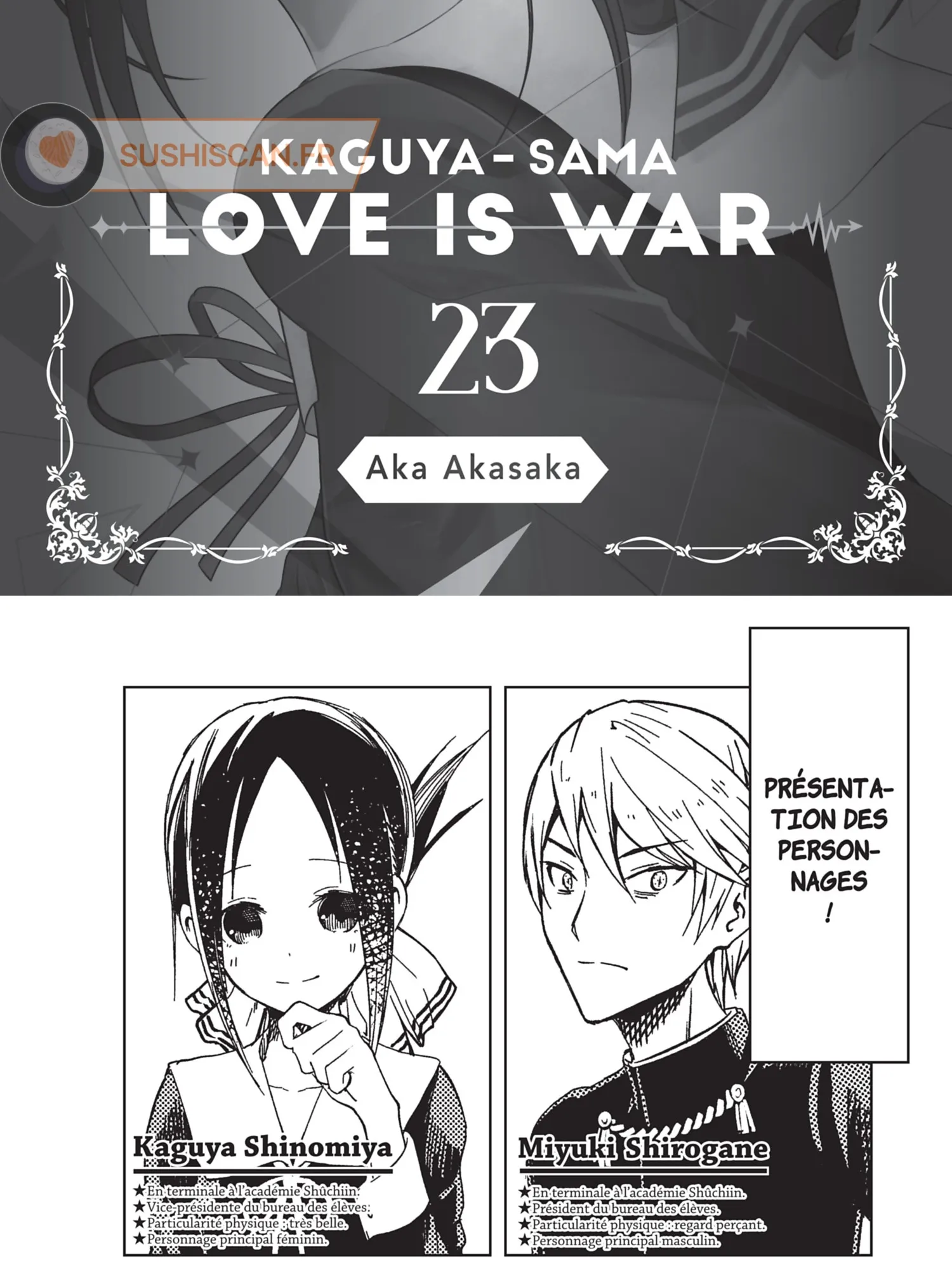 Lisez le dernier manga Kaguya-sama: Love is War Tome 23 sur SushiScan. Le manga Kaguya-sama: Love is War est toujours mis à jour sur SushiScan. N'oubliez pas de lire les autres mises à jour de manga. Une liste de collections de manga SushiScan se trouve dans le menu Liste de manga.