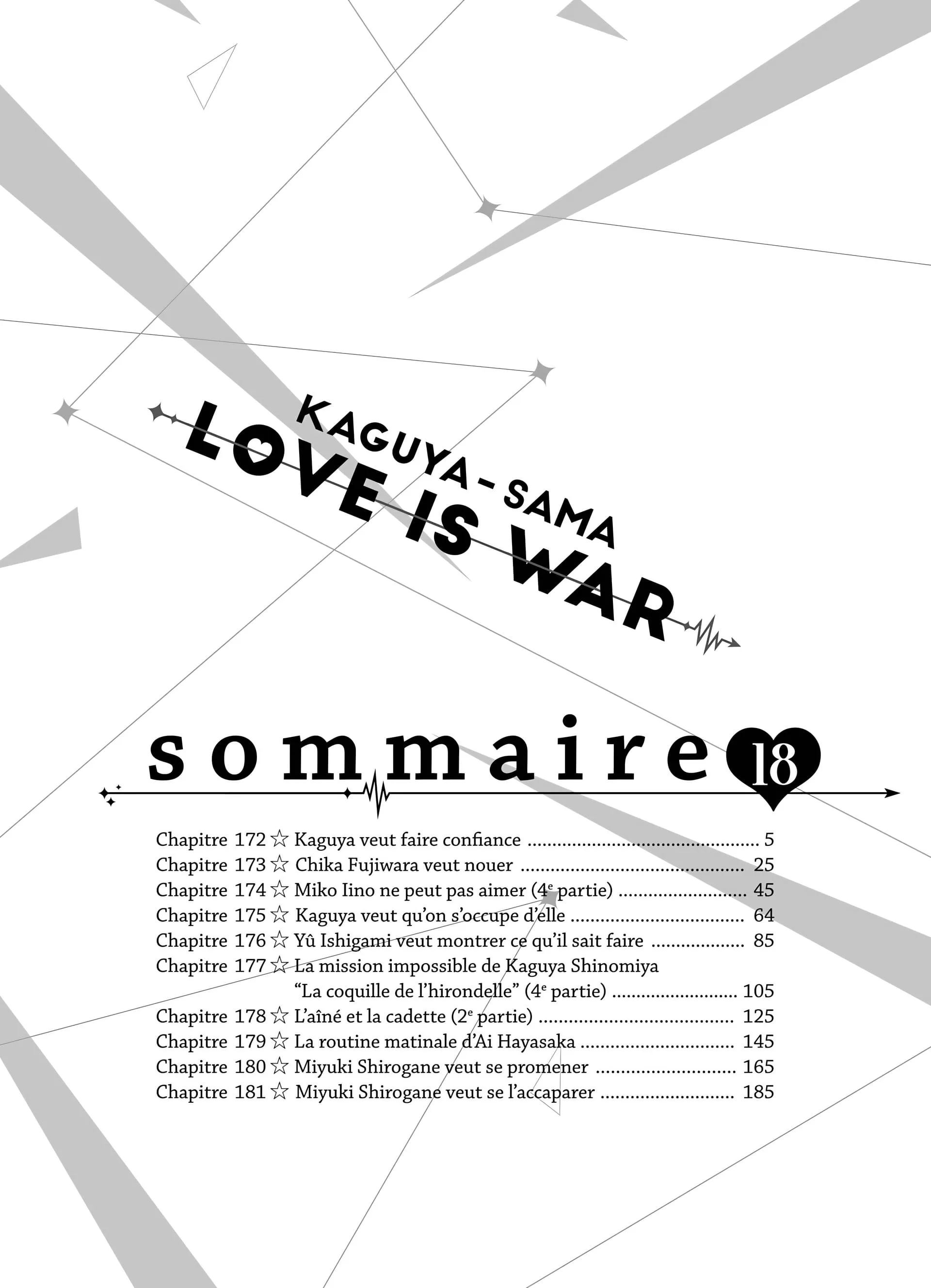 Lisez le dernier manga Kaguya-sama: Love is War Volume 18 VF sur SushiScan. Le manga Kaguya-sama: Love is War est toujours mis à jour sur SushiScan. N'oubliez pas de lire les autres mises à jour de manga. Une liste de collections de manga SushiScan se trouve dans le menu Liste de manga.