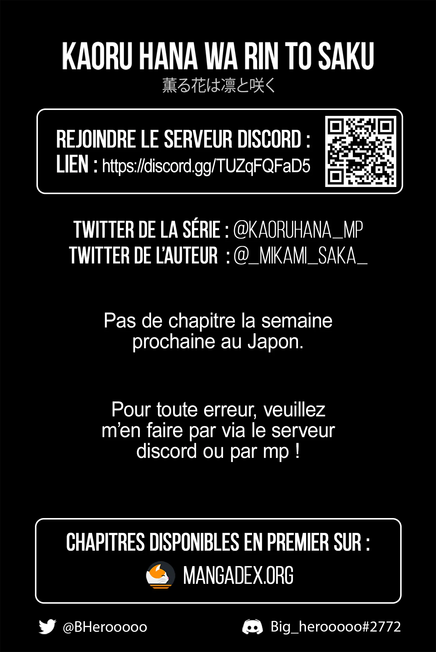 Tous les chapitres sont dans Kaoru Hana wa Rin to Saku