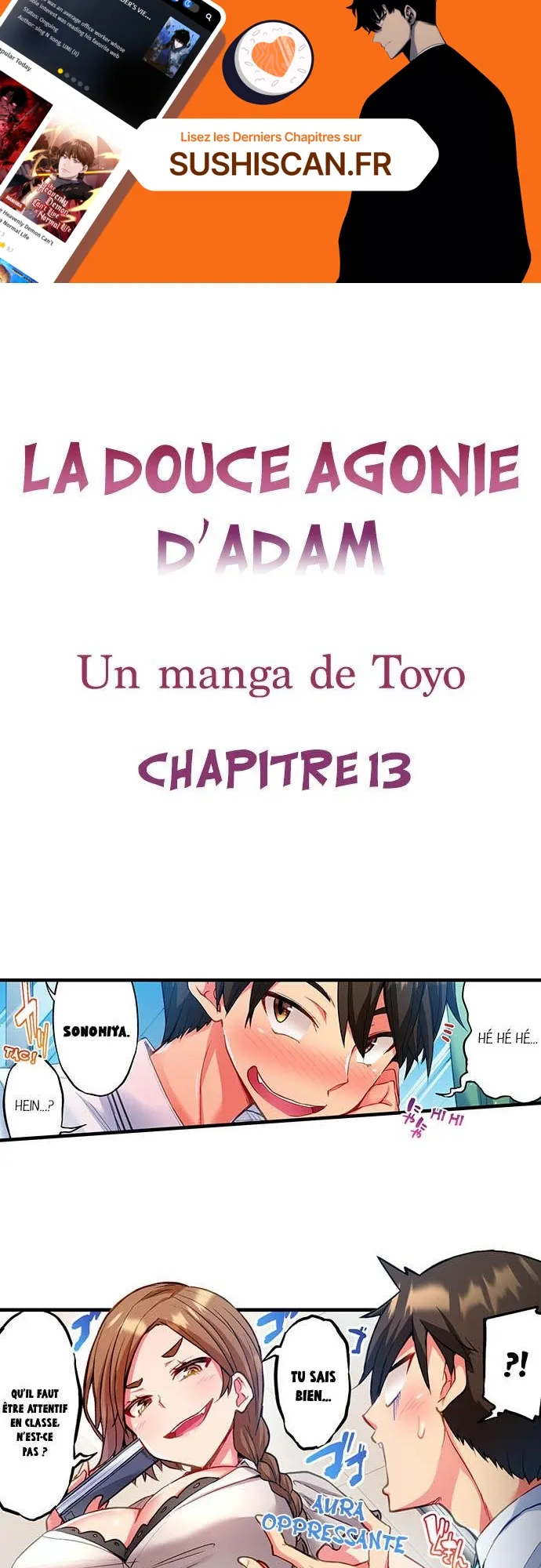 Lisez le dernier manga La douce agonie d’Adam Chapitre 13 sur SushiScan. Le manga La douce agonie d’Adam est toujours mis à jour sur SushiScan. N'oubliez pas de lire les autres mises à jour de manga. Une liste de collections de manga SushiScan se trouve dans le menu Liste de manga.