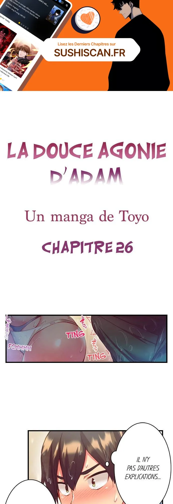 Lisez le dernier manga La douce agonie d’Adam Chapitre 26 sur SushiScan. Le manga La douce agonie d’Adam est toujours mis à jour sur SushiScan. N'oubliez pas de lire les autres mises à jour de manga. Une liste de collections de manga SushiScan se trouve dans le menu Liste de manga.