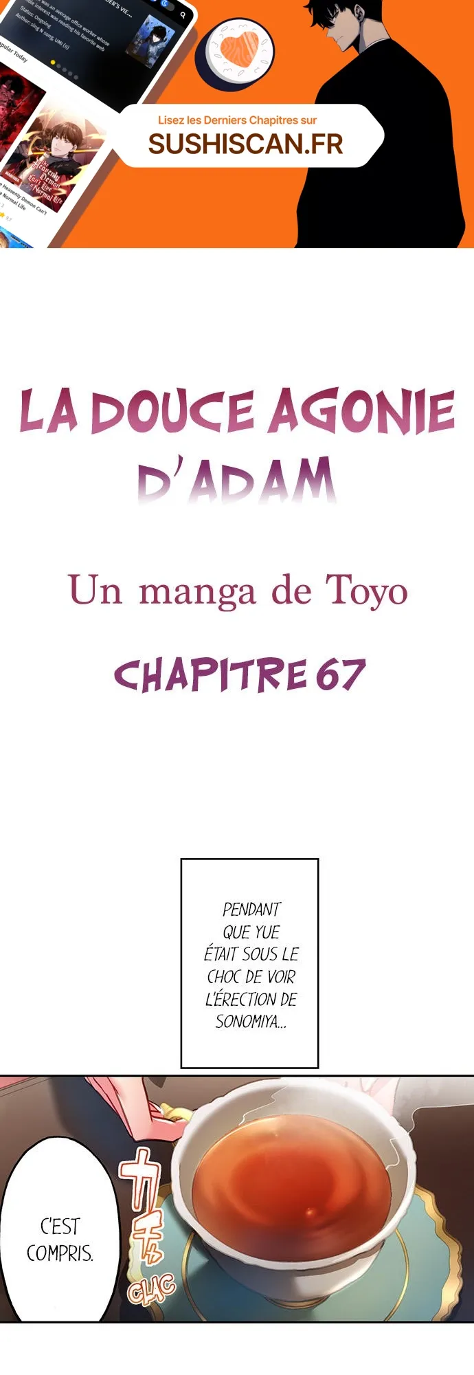 Lisez le dernier manga La douce agonie d’Adam Chapitre 67 sur SushiScan. Le manga La douce agonie d’Adam est toujours mis à jour sur SushiScan. N'oubliez pas de lire les autres mises à jour de manga. Une liste de collections de manga SushiScan se trouve dans le menu Liste de manga.