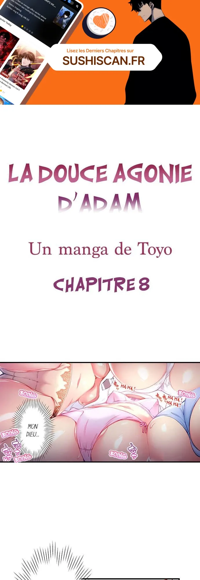 Lisez le dernier manga La douce agonie d’Adam Chapitre 8 sur SushiScan. Le manga La douce agonie d’Adam est toujours mis à jour sur SushiScan. N'oubliez pas de lire les autres mises à jour de manga. Une liste de collections de manga SushiScan se trouve dans le menu Liste de manga.