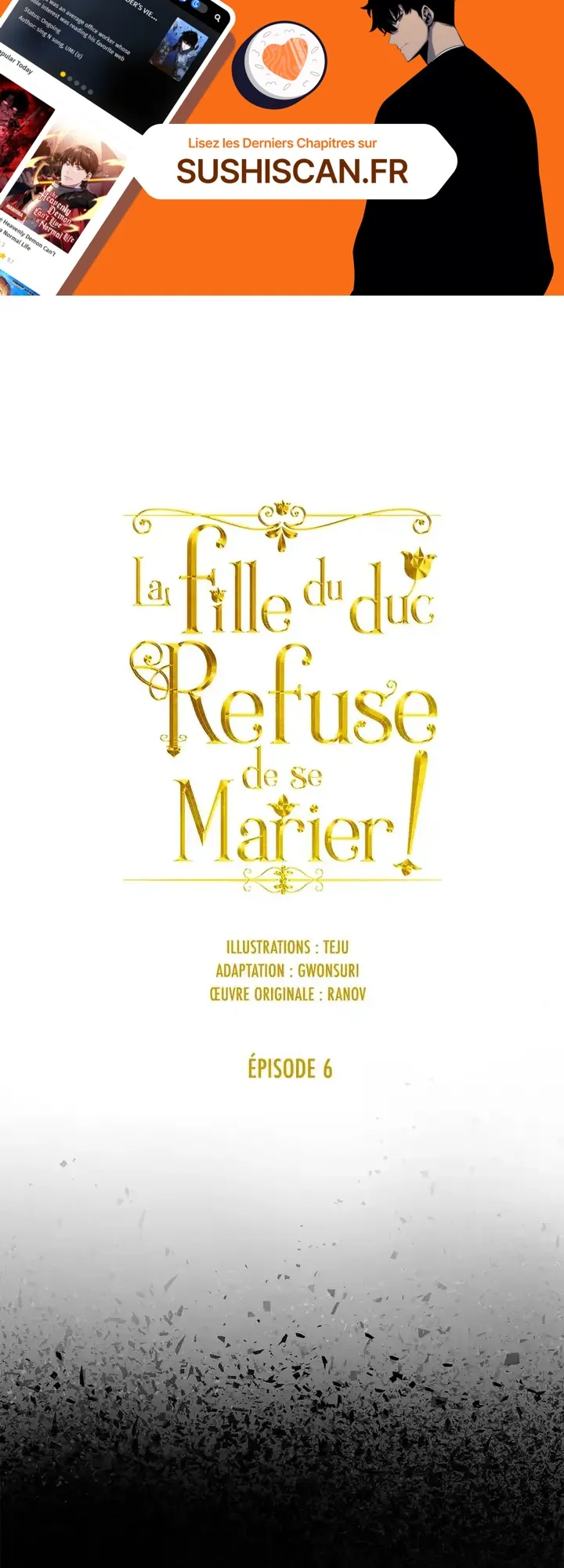 Lisez le dernier manga La fille du duc ne veut pas se marier ! Chapitre 6 sur SushiScan. Le manga La fille du duc ne veut pas se marier ! est toujours mis à jour sur SushiScan. N'oubliez pas de lire les autres mises à jour de manga. Une liste de collections de manga SushiScan se trouve dans le menu Liste de manga.