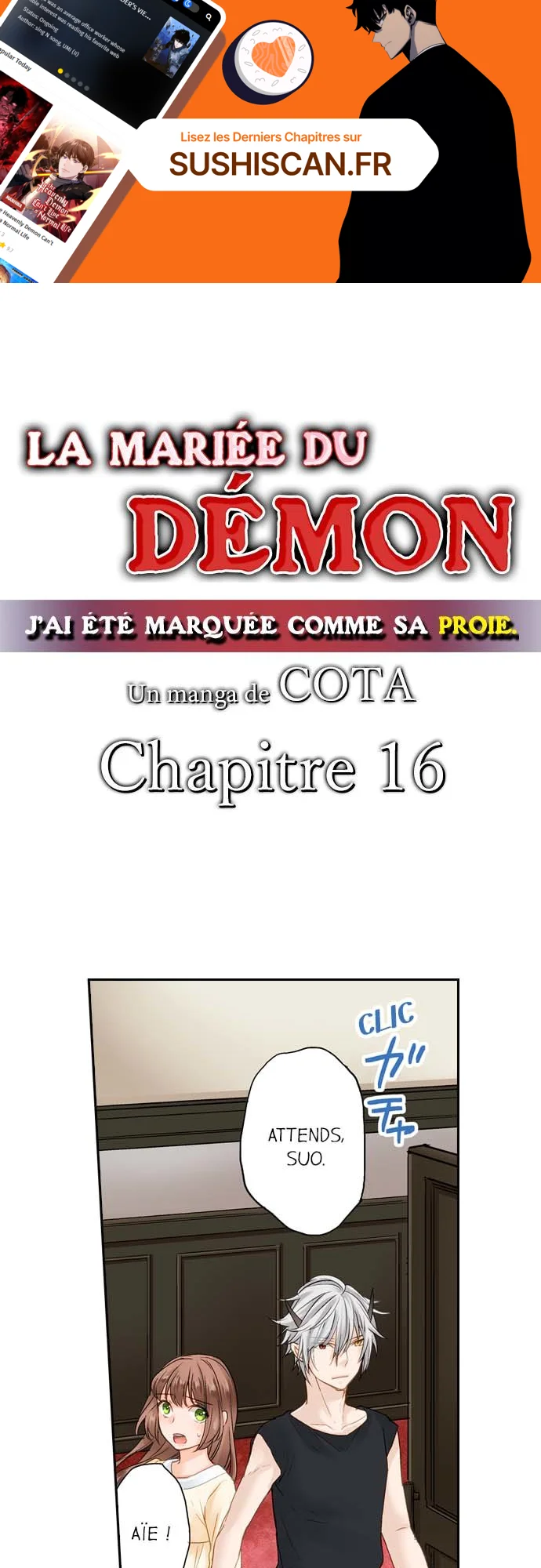 Lisez le dernier manga La mariée du démon Chapitre 16 VF sur SushiScan. Le manga La mariée du démon est toujours mis à jour sur SushiScan. N'oubliez pas de lire les autres mises à jour de manga. Une liste de collections de manga SushiScan se trouve dans le menu Liste de manga.