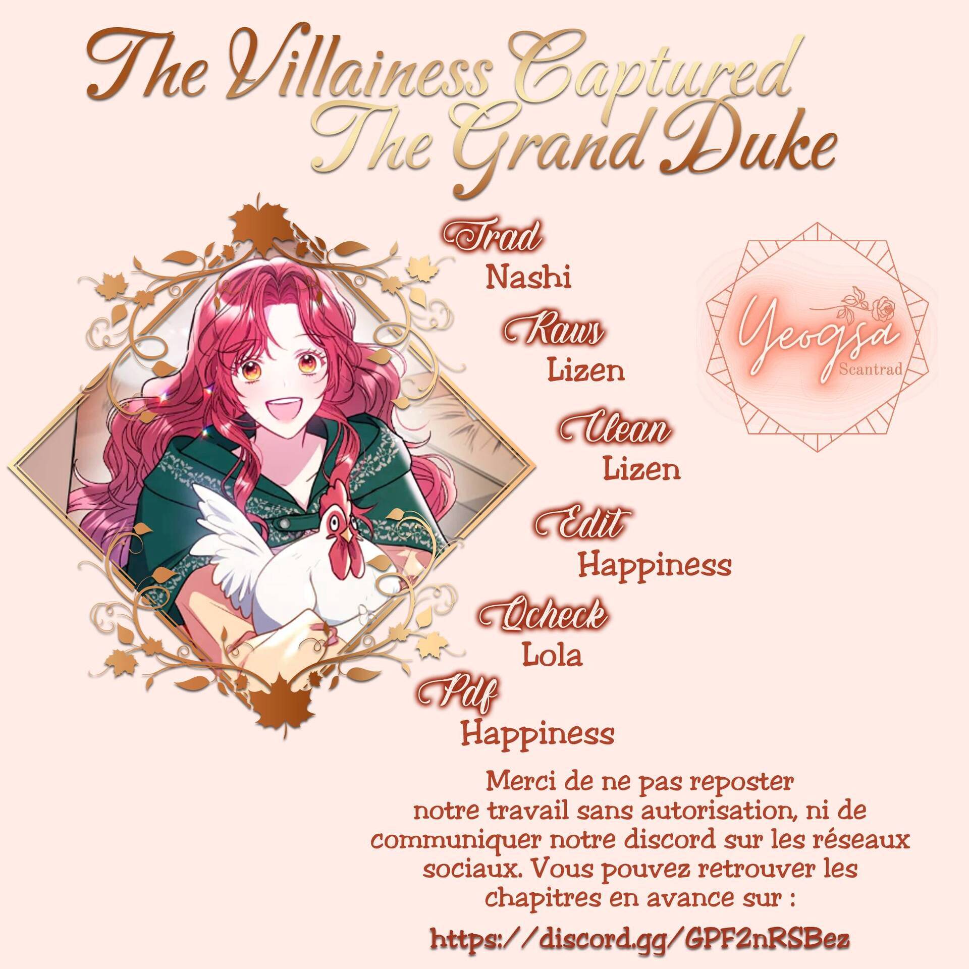 Lisez le dernier manga La Méchante a capturé le Grand Duc Chapitre 18 sur SushiScan. Le manga La Méchante a capturé le Grand Duc est toujours mis à jour sur SushiScan. N'oubliez pas de lire les autres mises à jour de manga. Une liste de collections de manga SushiScan se trouve dans le menu Liste de manga.