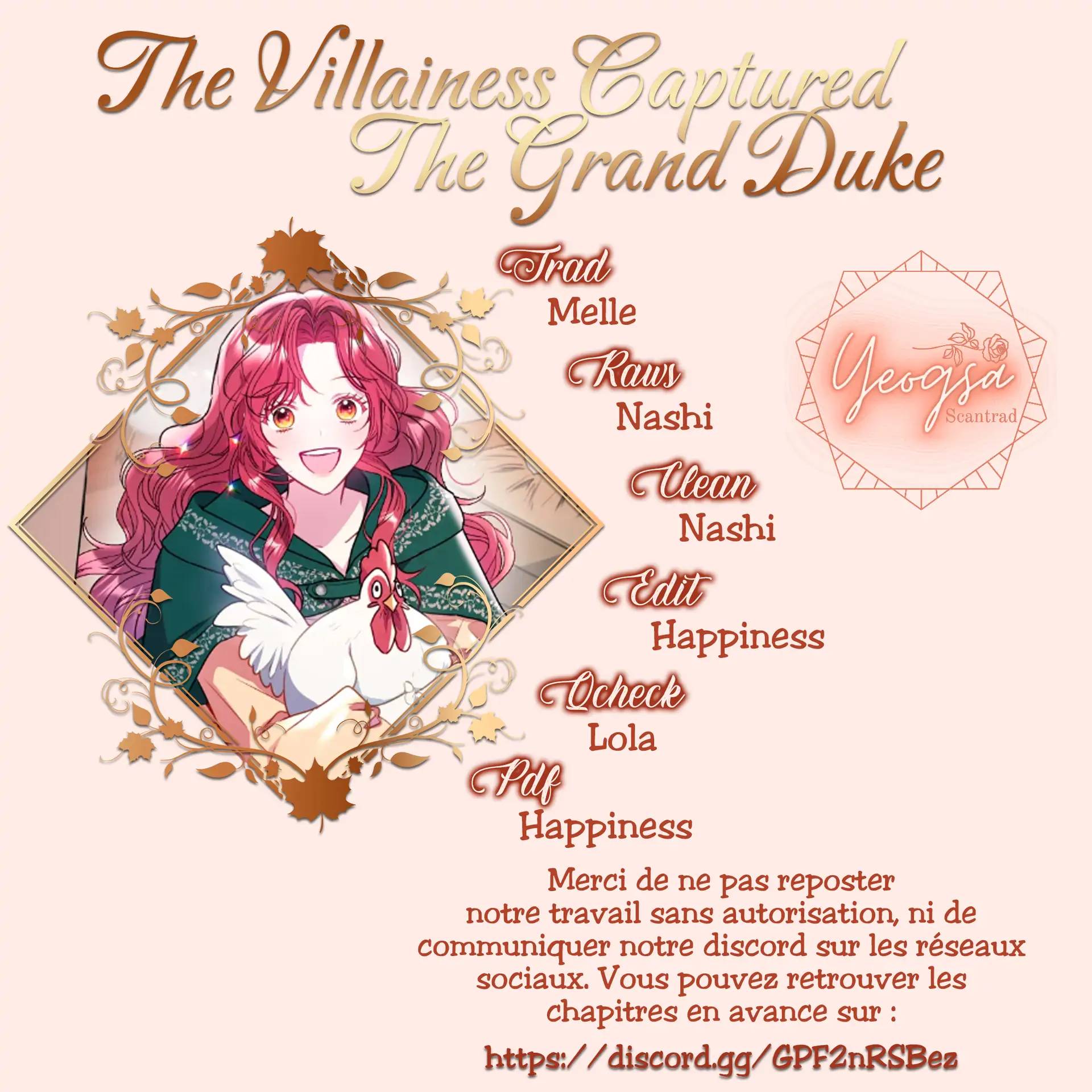 Lisez le dernier manga La Méchante a capturé le Grand Duc Chapitre 19 sur SushiScan. Le manga La Méchante a capturé le Grand Duc est toujours mis à jour sur SushiScan. N'oubliez pas de lire les autres mises à jour de manga. Une liste de collections de manga SushiScan se trouve dans le menu Liste de manga.