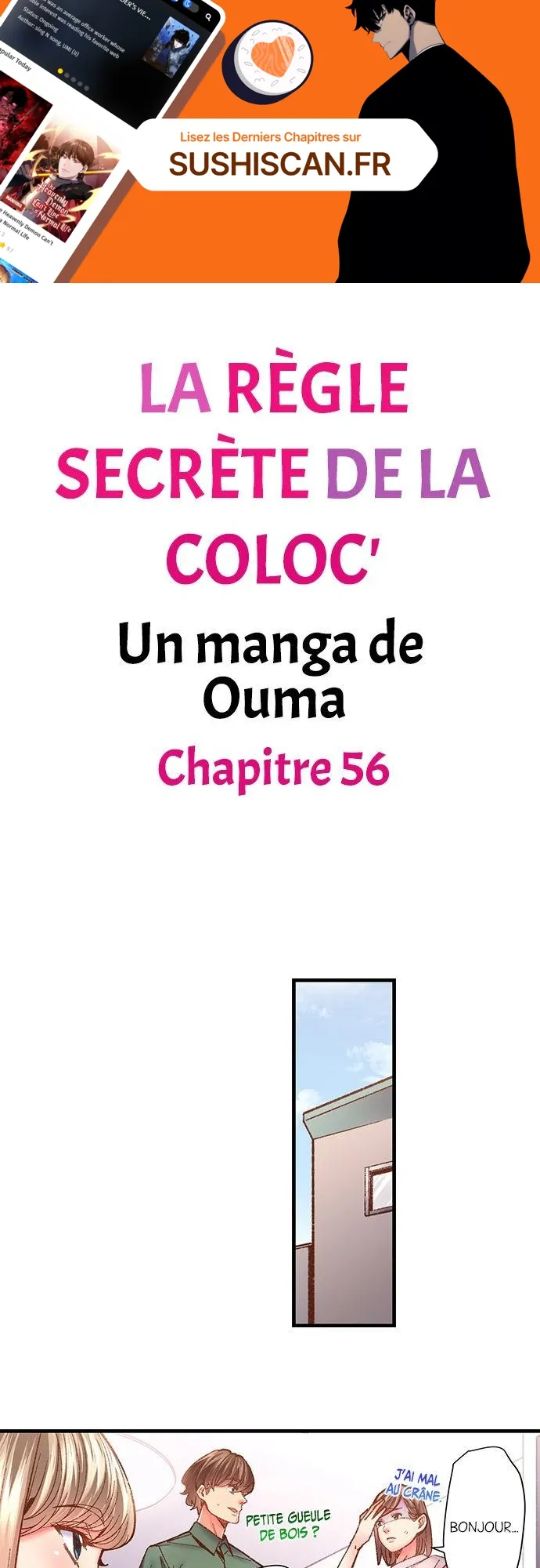 Lisez le dernier manga La règle secrète de la coloc’ Chapitre 56 sur SushiScan. Le manga La règle secrète de la coloc’ est toujours mis à jour sur SushiScan. N'oubliez pas de lire les autres mises à jour de manga. Une liste de collections de manga SushiScan se trouve dans le menu Liste de manga.