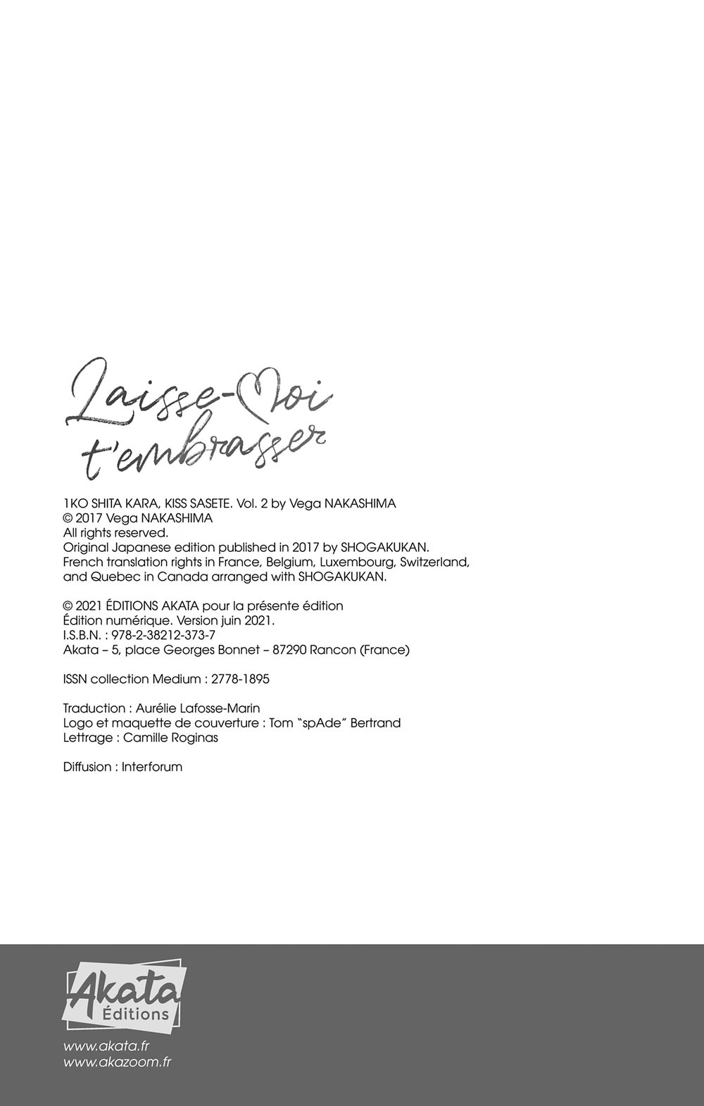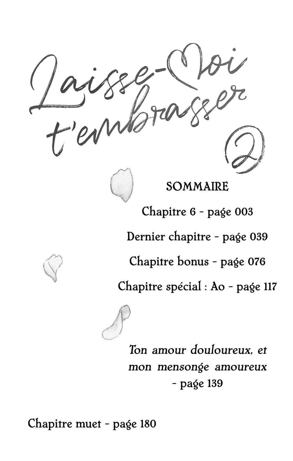 Lisez le dernier manga Laisse-moi t’embrasser Volume 2 sur SushiScan. Le manga Laisse-moi t’embrasser est toujours mis à jour sur SushiScan. N'oubliez pas de lire les autres mises à jour de manga. Une liste de collections de manga SushiScan se trouve dans le menu Liste de manga.