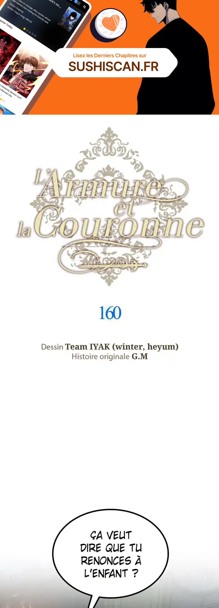 Lisez le dernier manga L’Armure et la Couronne Chapitre 160 sur SushiScan. Le manga L’Armure et la Couronne est toujours mis à jour sur SushiScan. N'oubliez pas de lire les autres mises à jour de manga. Une liste de collections de manga SushiScan se trouve dans le menu Liste de manga.