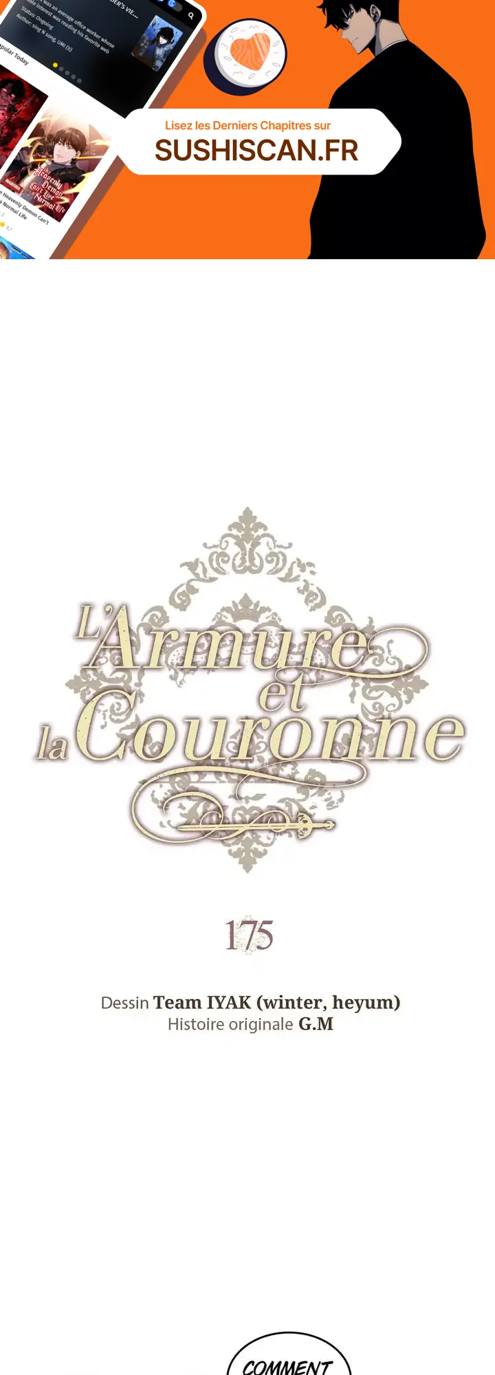 Lisez le dernier manga L’Armure et la Couronne Chapitre 175 sur SushiScan. Le manga L’Armure et la Couronne est toujours mis à jour sur SushiScan. N'oubliez pas de lire les autres mises à jour de manga. Une liste de collections de manga SushiScan se trouve dans le menu Liste de manga.