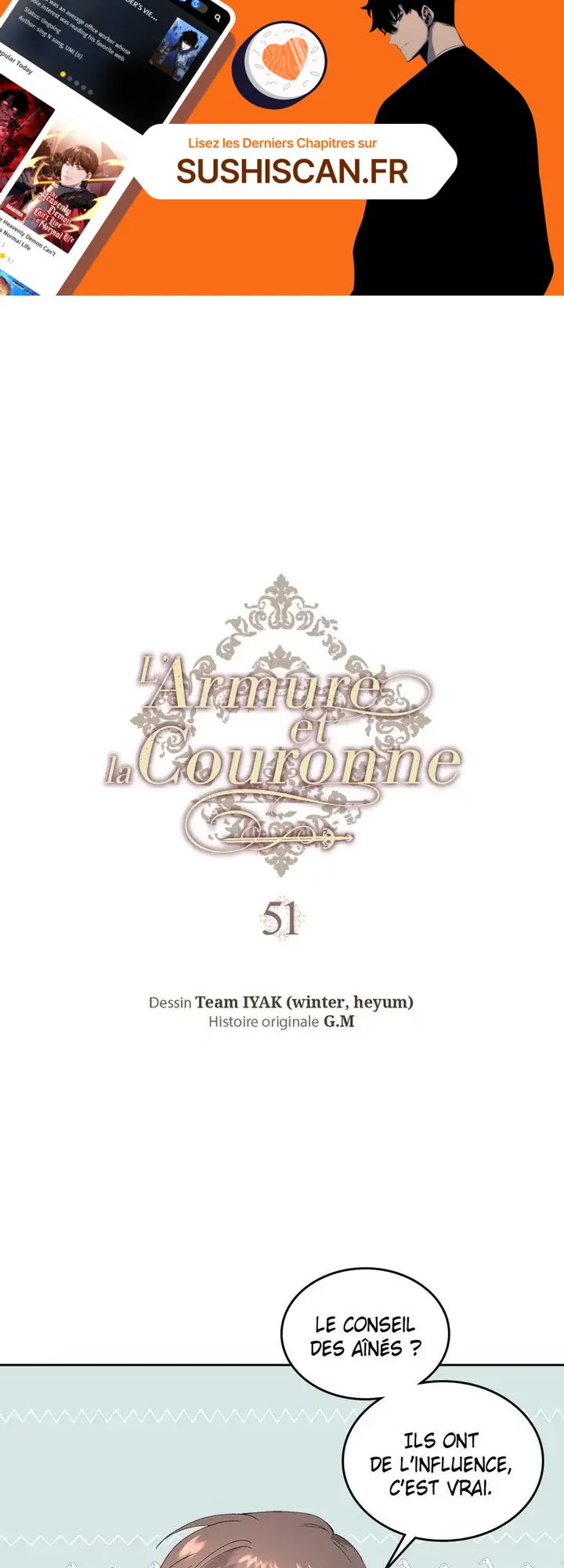 Lisez le dernier manga L’Armure et la Couronne Chapitre 51 sur SushiScan. Le manga L’Armure et la Couronne est toujours mis à jour sur SushiScan. N'oubliez pas de lire les autres mises à jour de manga. Une liste de collections de manga SushiScan se trouve dans le menu Liste de manga.