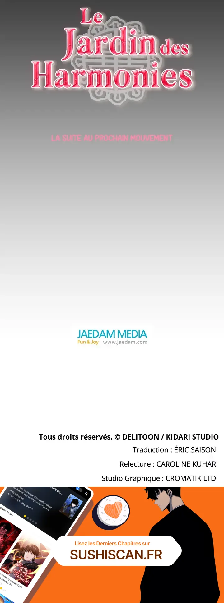 Lisez le dernier manga Le Jardin des Harmonies Chapitre 75 sur SushiScan. Le manga Le Jardin des Harmonies est toujours mis à jour sur SushiScan. N'oubliez pas de lire les autres mises à jour de manga. Une liste de collections de manga SushiScan se trouve dans le menu Liste de manga.