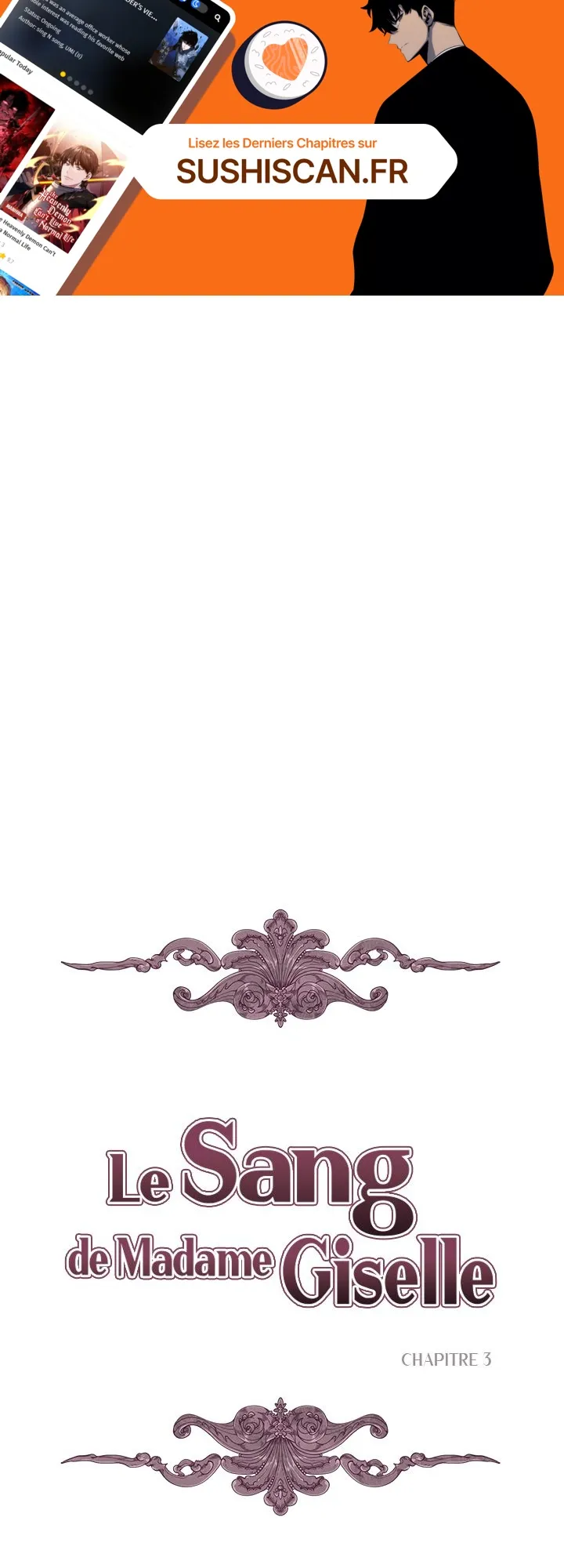 Lisez le dernier manga Le Sang de Madame Giselle Chapitre 3 sur SushiScan. Le manga Le Sang de Madame Giselle est toujours mis à jour sur SushiScan. N'oubliez pas de lire les autres mises à jour de manga. Une liste de collections de manga SushiScan se trouve dans le menu Liste de manga.