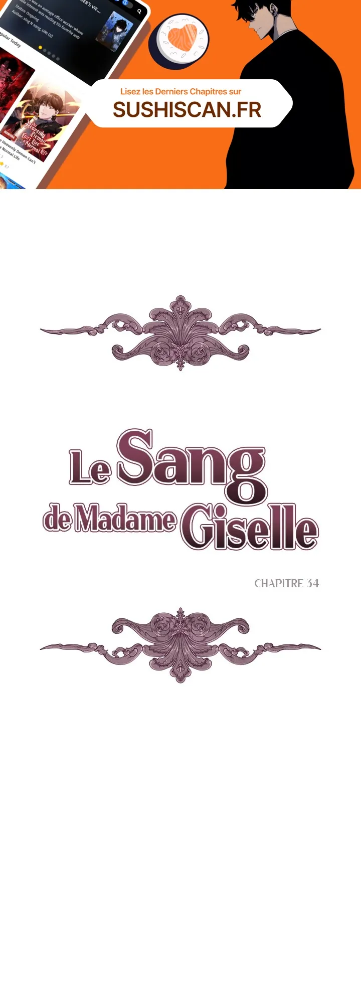 Lisez le dernier manga Le Sang de Madame Giselle Chapitre 34 sur SushiScan. Le manga Le Sang de Madame Giselle est toujours mis à jour sur SushiScan. N'oubliez pas de lire les autres mises à jour de manga. Une liste de collections de manga SushiScan se trouve dans le menu Liste de manga.