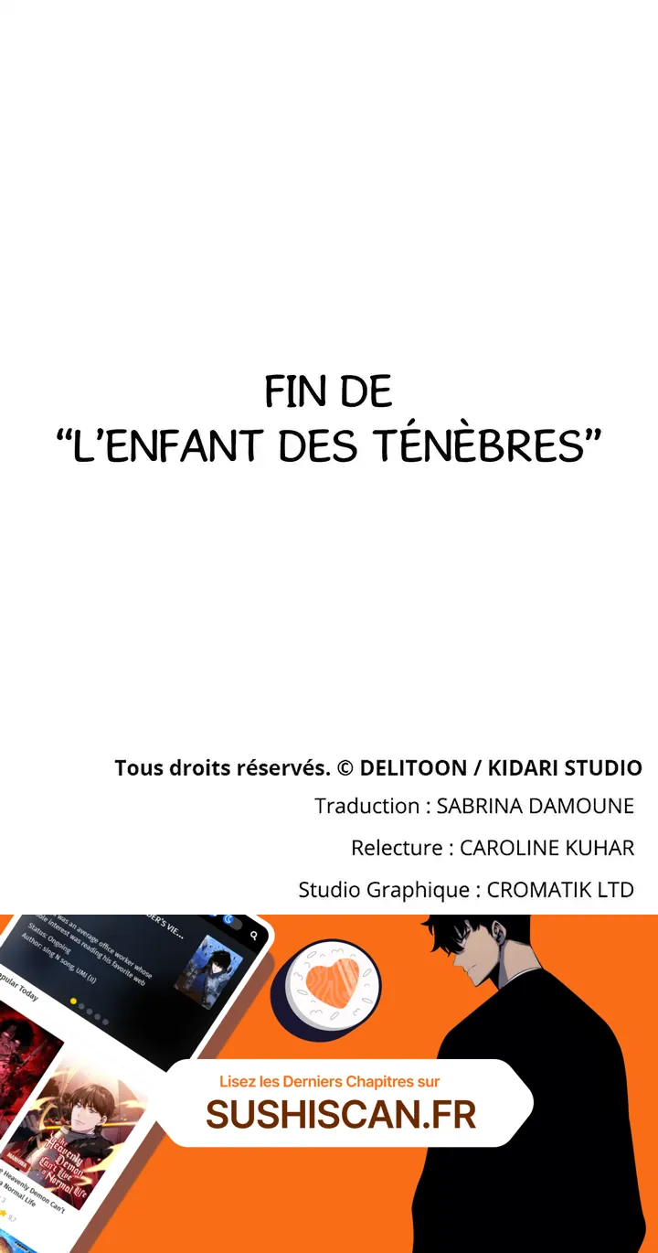 Lisez le dernier manga L’Enfant des Ténèbres Chapitre 150 sur SushiScan. Le manga L’Enfant des Ténèbres est toujours mis à jour sur SushiScan. N'oubliez pas de lire les autres mises à jour de manga. Une liste de collections de manga SushiScan se trouve dans le menu Liste de manga.