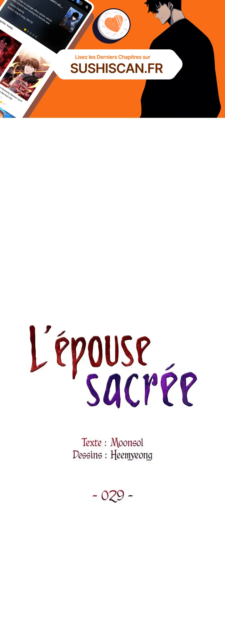Lisez le dernier manga L’épouse sacrée Chapitre 29 sur SushiScan. Le manga L’épouse sacrée est toujours mis à jour sur SushiScan. N'oubliez pas de lire les autres mises à jour de manga. Une liste de collections de manga SushiScan se trouve dans le menu Liste de manga.