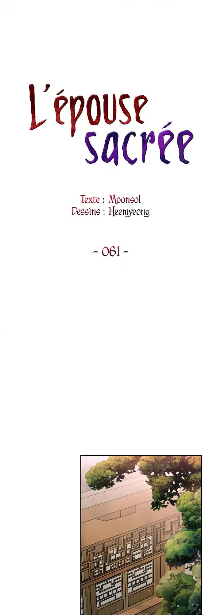 Lisez le dernier manga L’épouse sacrée Chapitre 61 sur SushiScan. Le manga L’épouse sacrée est toujours mis à jour sur SushiScan. N'oubliez pas de lire les autres mises à jour de manga. Une liste de collections de manga SushiScan se trouve dans le menu Liste de manga.