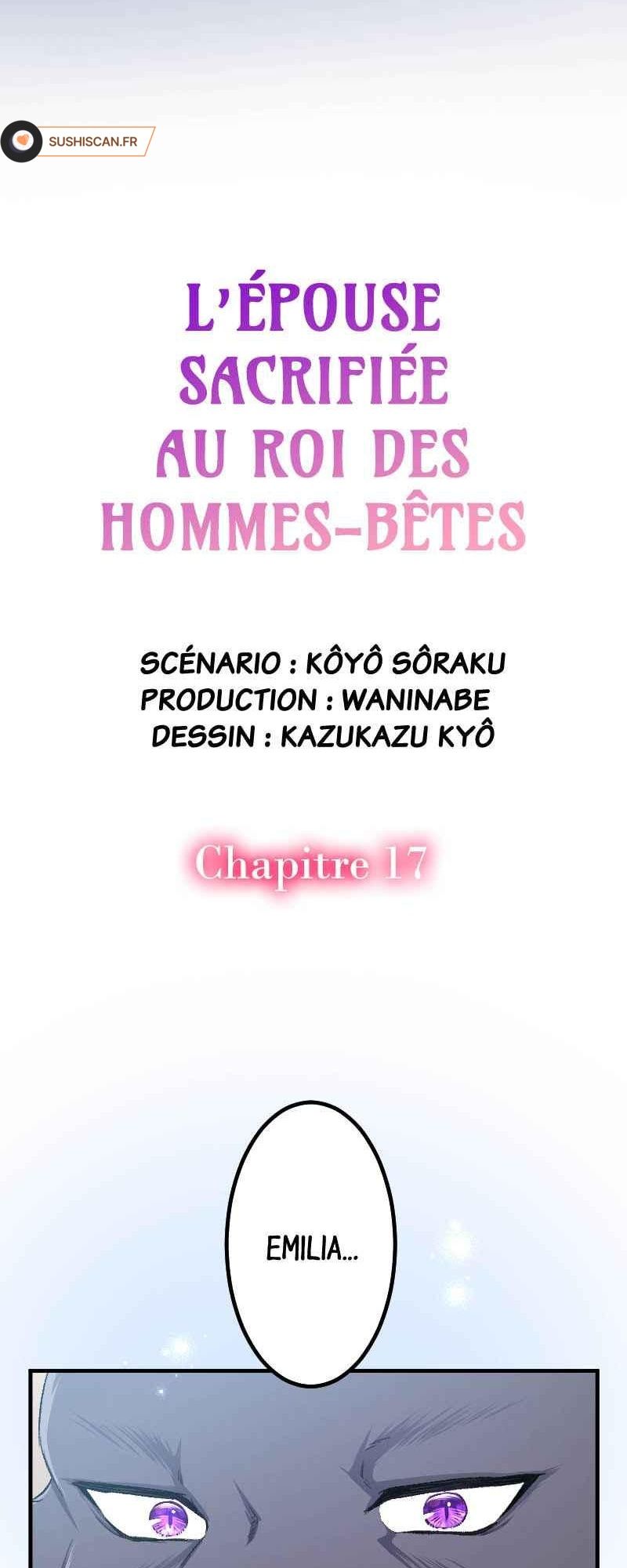 Lisez le dernier manga L’épouse sacrifiée au roi des hommes-bêtes Chapitre 17 sur SushiScan. Le manga L’épouse sacrifiée au roi des hommes-bêtes est toujours mis à jour sur SushiScan. N'oubliez pas de lire les autres mises à jour de manga. Une liste de collections de manga SushiScan se trouve dans le menu Liste de manga.
