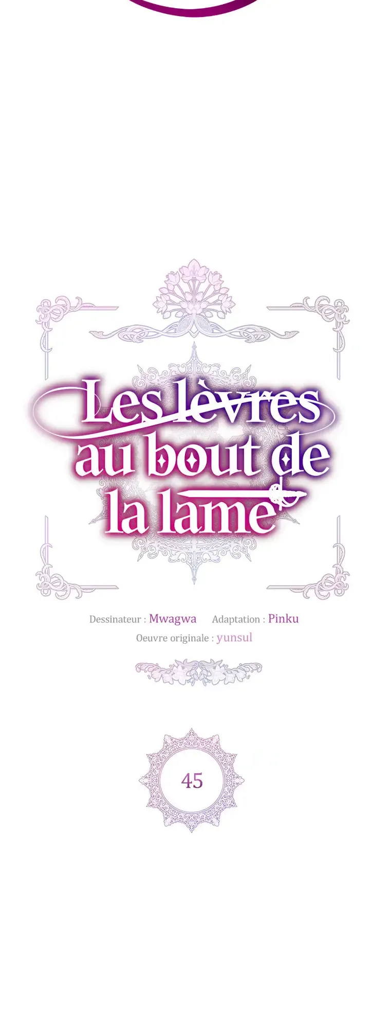 Lisez le dernier manga Les lèvres au bout de la lame Chapitre 45 sur SushiScan. Le manga Les lèvres au bout de la lame est toujours mis à jour sur SushiScan. N'oubliez pas de lire les autres mises à jour de manga. Une liste de collections de manga SushiScan se trouve dans le menu Liste de manga.